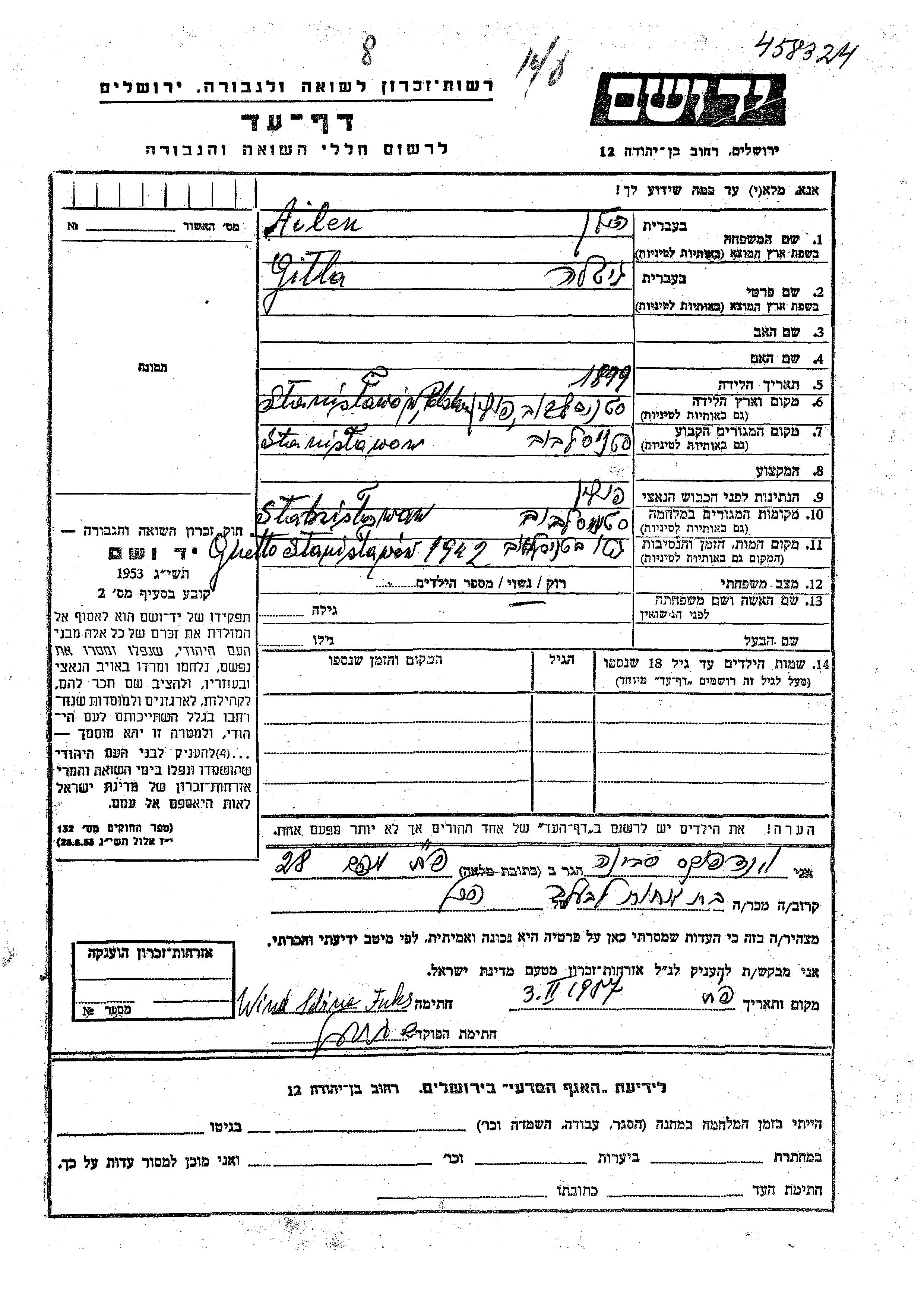 Gitla wurde in der Schoah ermordet. Todesort: Stanislaw, Polen im Jahr 1942.