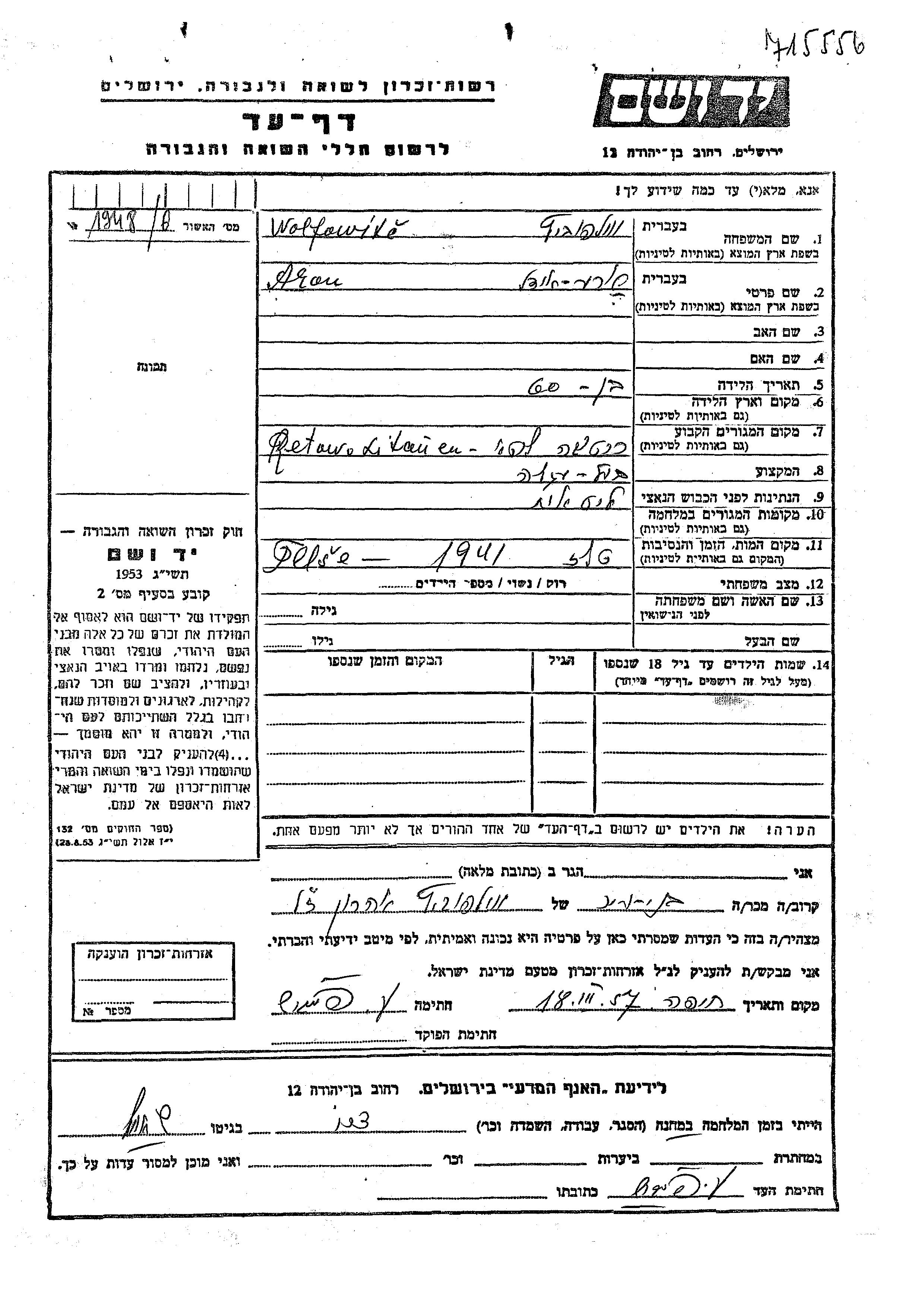 Aron Idl Wolfowitc. Er war Fuhrmann. Vor dem Zweiten Weltkrieg lebte er in Retawo, Litauen.