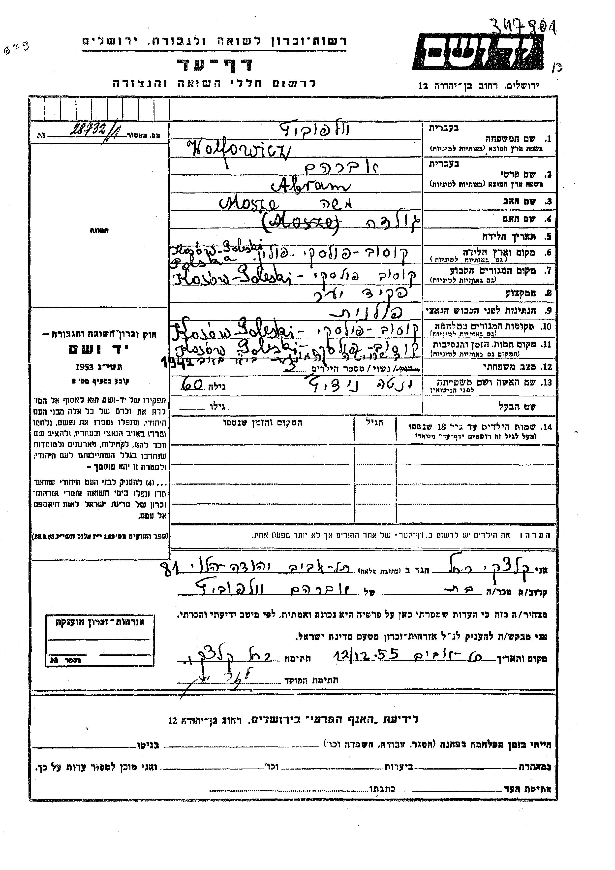 Abram wurde in der Schoah ermordet. Todesort: Kosow Poleski, Polen im Jahr 1942.