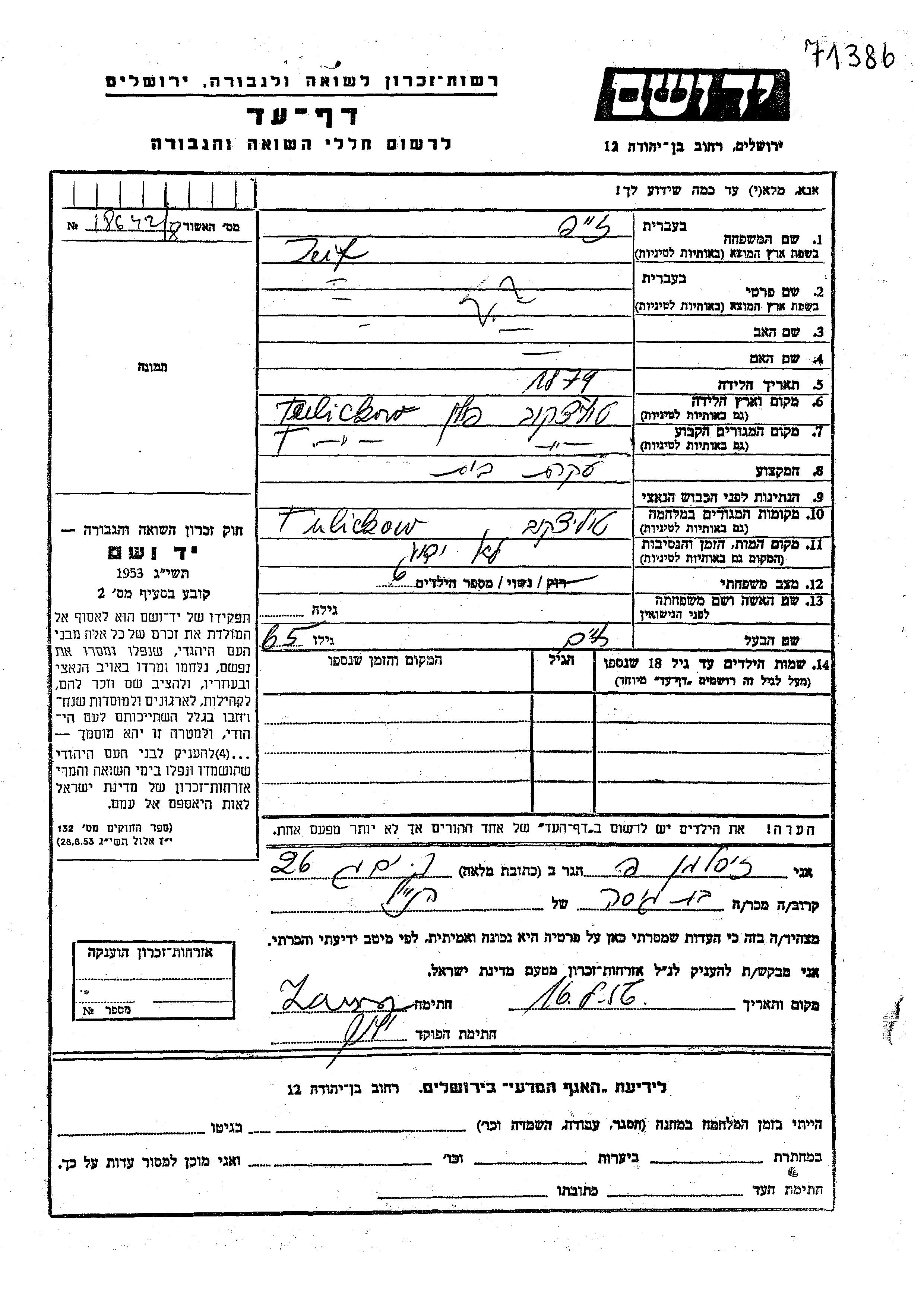 Vorname unbekannt Zeif wurde im Jahr 1879 in Tulishkov, Polen geboren. Sie war Hausfrau und mit Khaim Verheiratet. Vor dem Zweiten Weltkrieg lebte sie in Tulishkov, Polen. Während des Krieges war sie in Tulishkov, Polen.