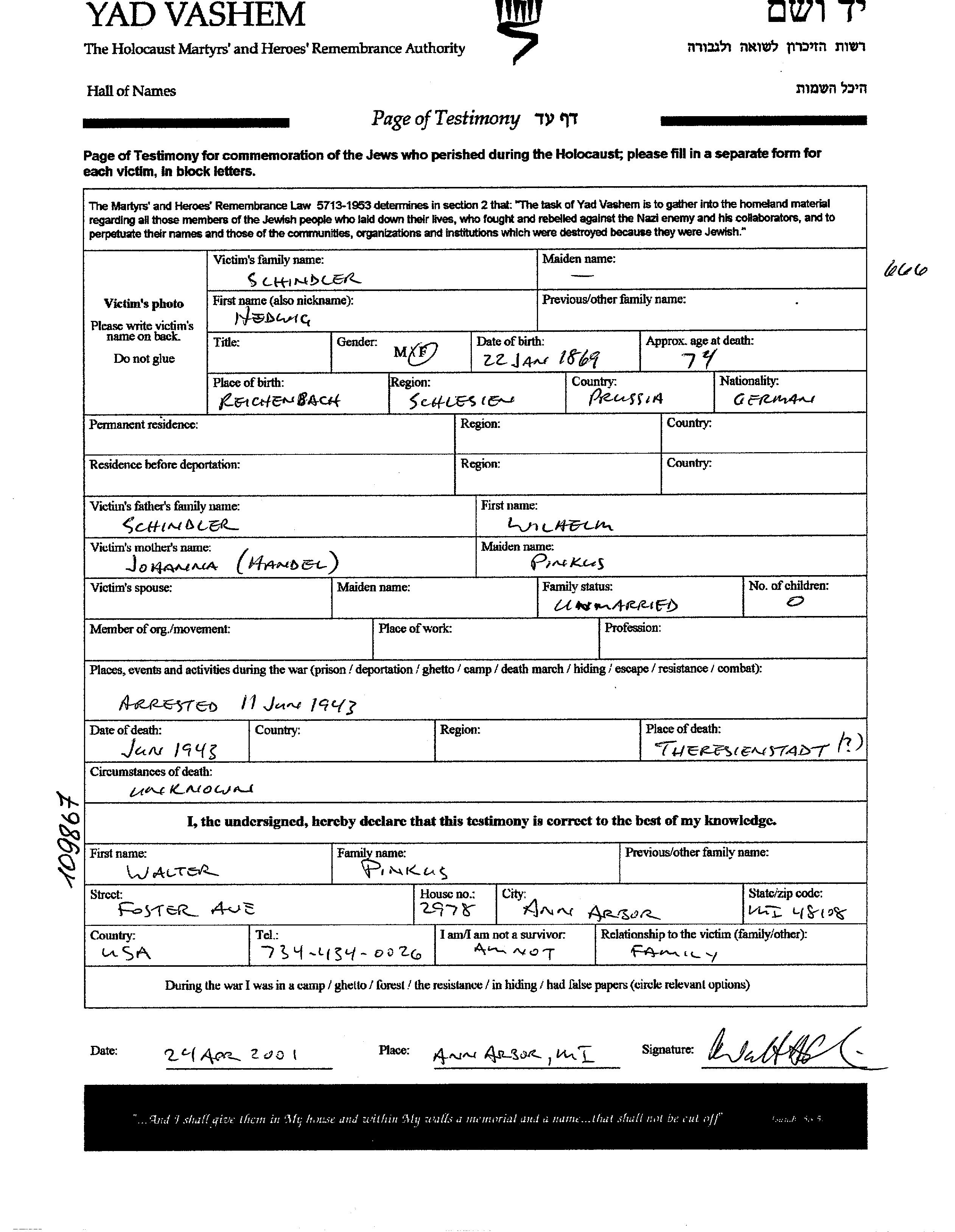 Suche nach dem Nachnamen des Einreichenden eines Gedenkblattes. Bei Frauen ist der Mädchenname mit einbezogen.