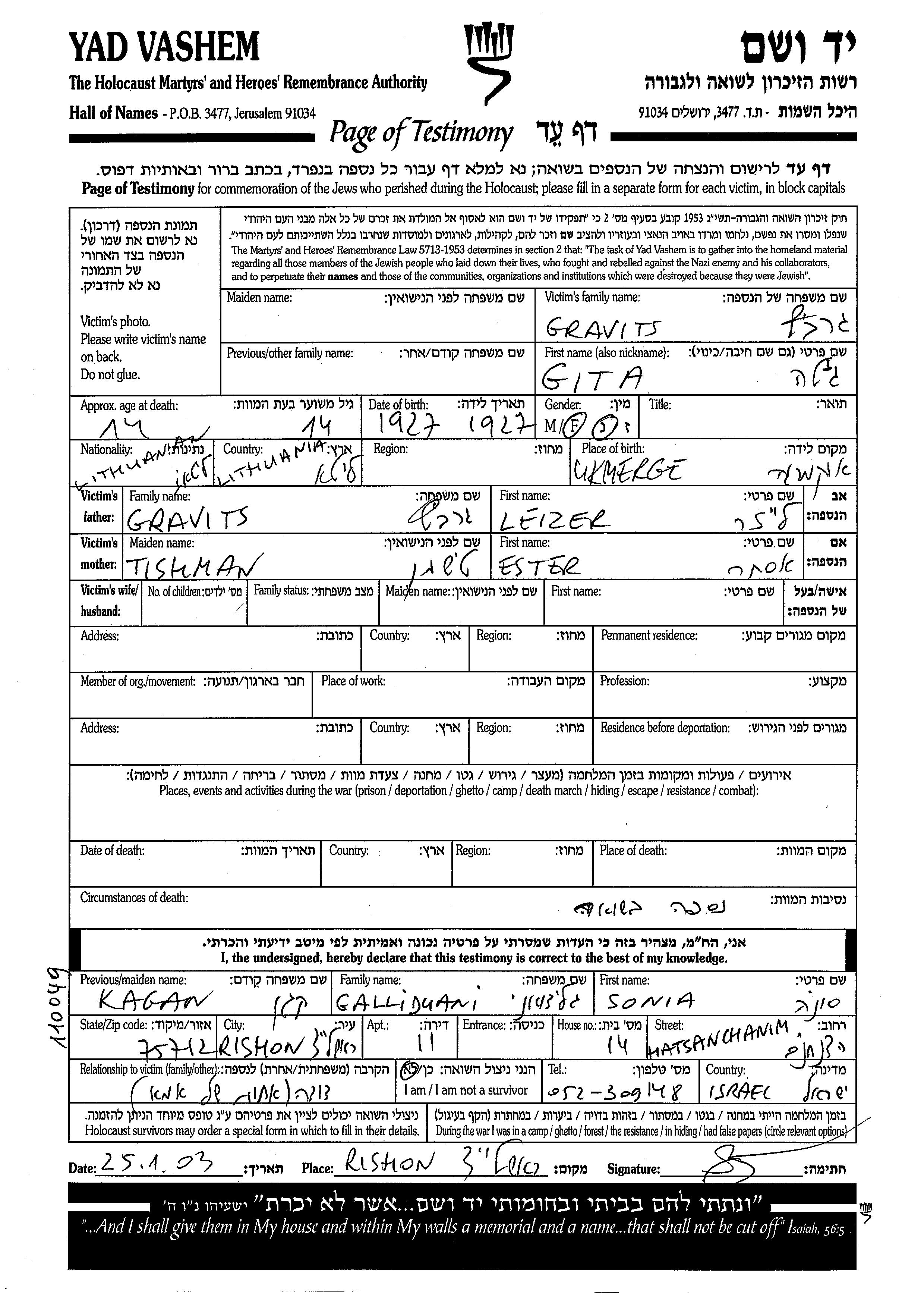 Stadt/Ortschaft oder Lager/Ghetto oder Bezirk/Region oder Land