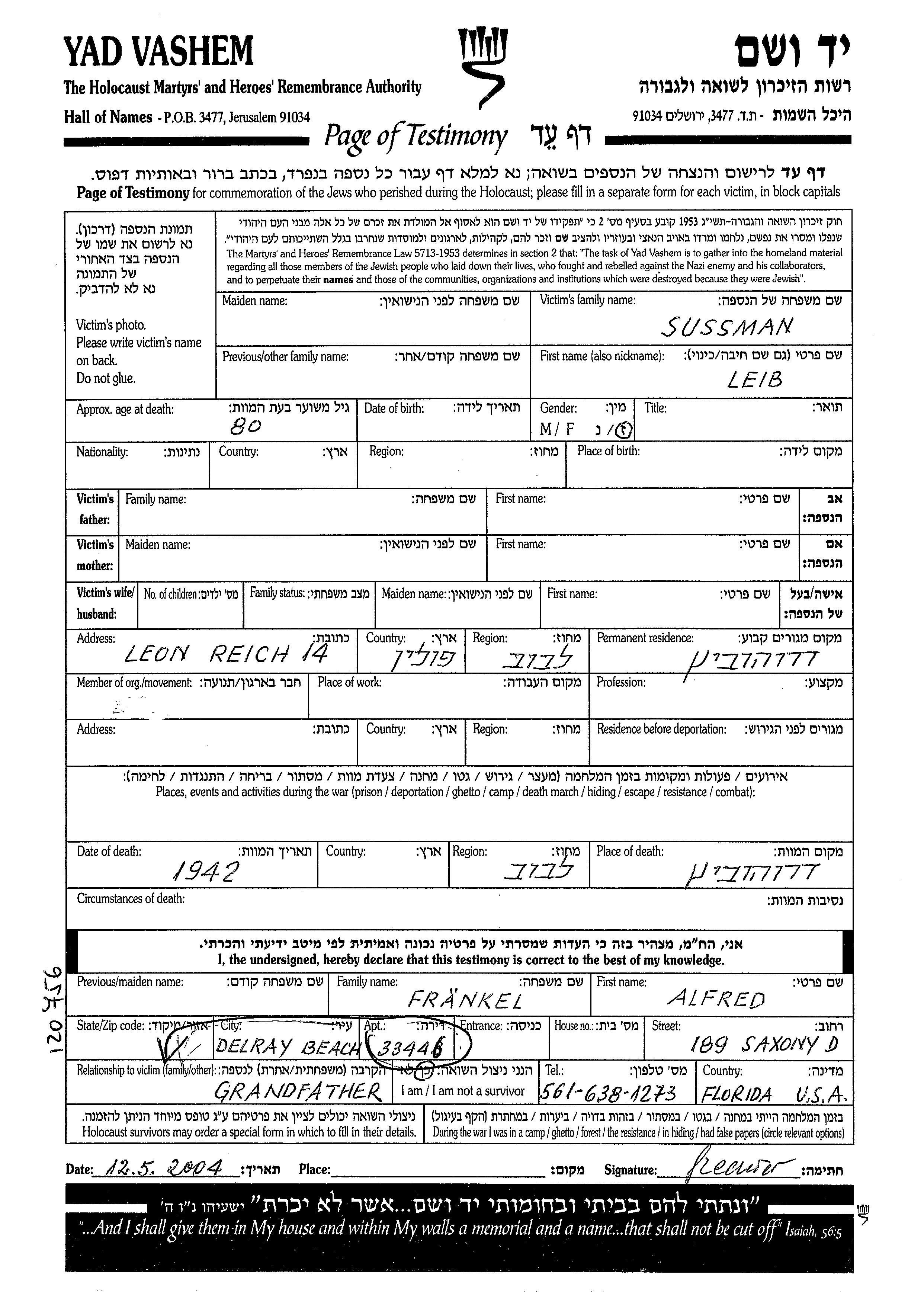 Suche nach einem Todesjahr im Zeitraum der Holocaust: 1933 bis 1945. Bitte wählen Sie 'Exakt' im Auswahlmenü, um nur nach einem einzelnen Jahr zu suchen, alternativ können Sie die flexibleren Optionen '+/- 2 Jahre' oder '+/- 5 Jahre' wählen.