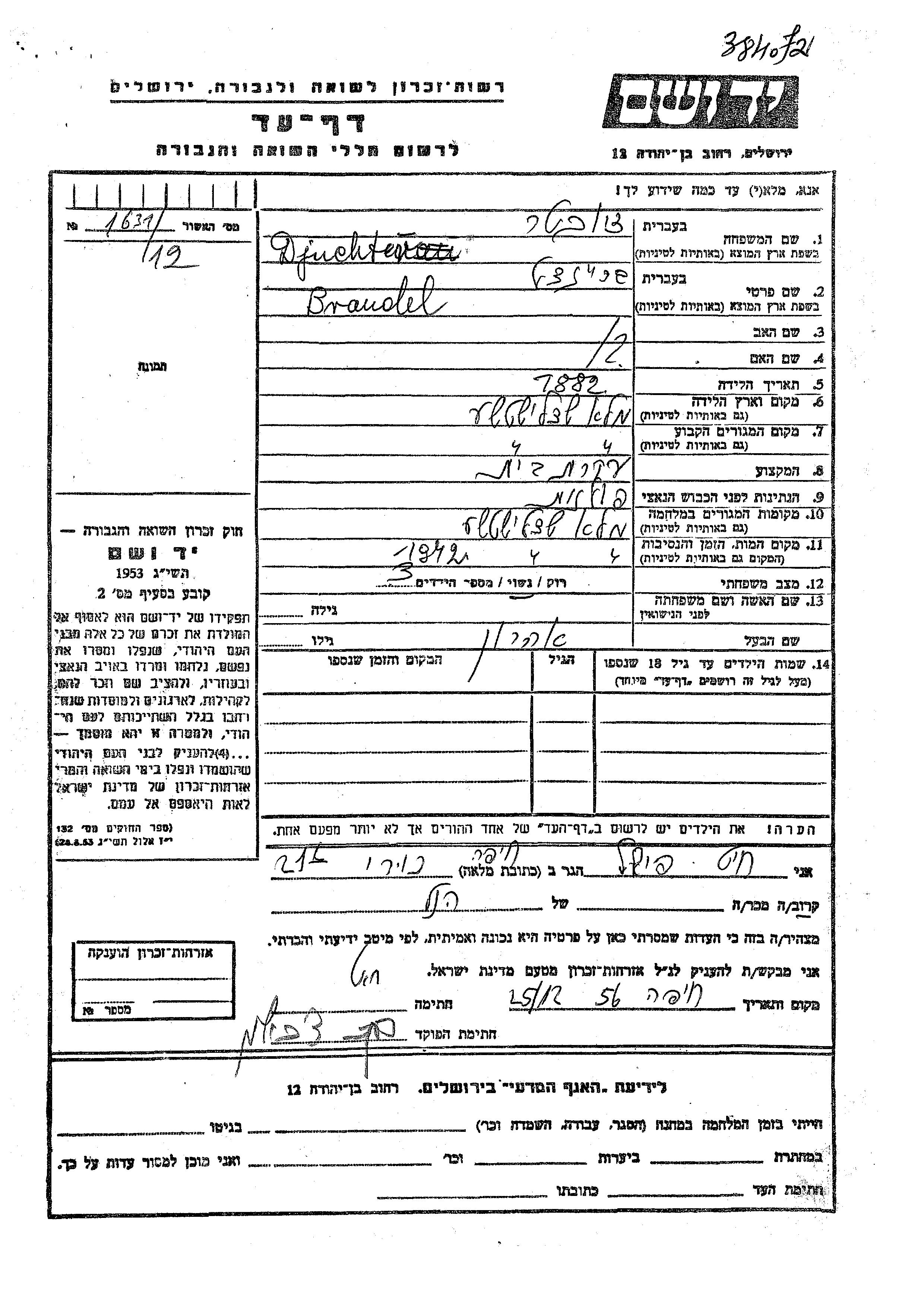 Braindel wurde in der Schoah ermordet. Todesort: Siedliszcze Male, Polen im Jahr 1942.