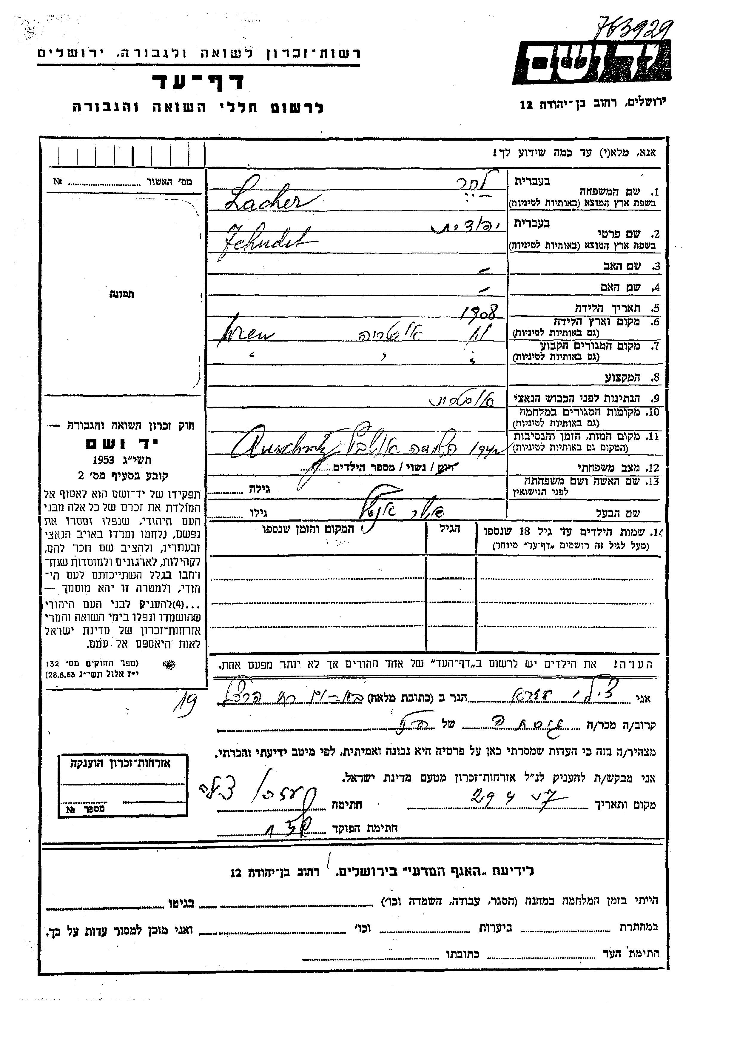 Lacher Yehudit 1908 Wien, Österreich Gedenkblatt