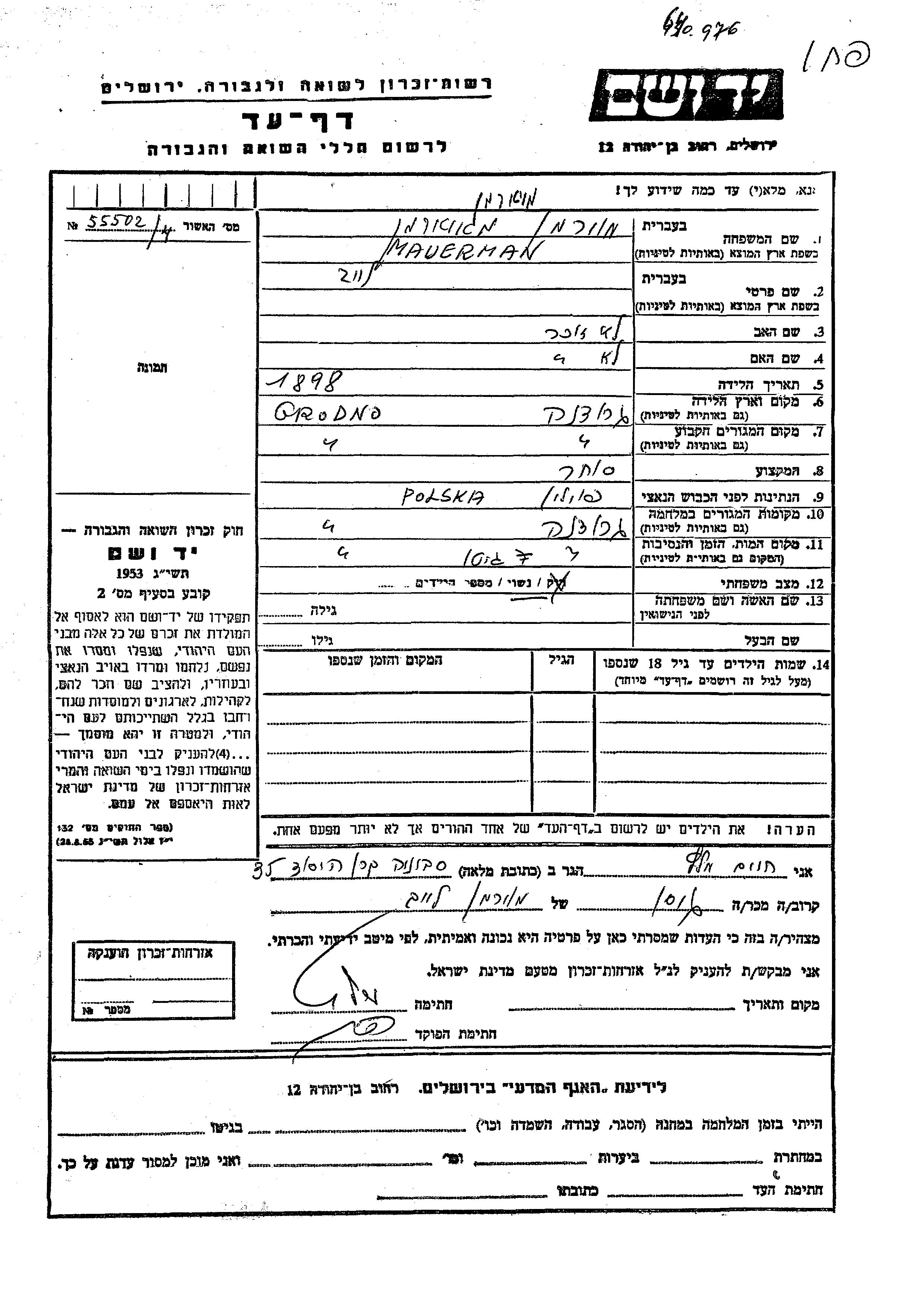 Leib Meierman wurde im Jahr 1898 in Grodno, Polen geboren. Er war Kaufmann/-frau und Verheiratet. Vor dem Zweiten Weltkrieg lebte er in Grodno, Polen. Während des Krieges war er in Grodno, Polen.
