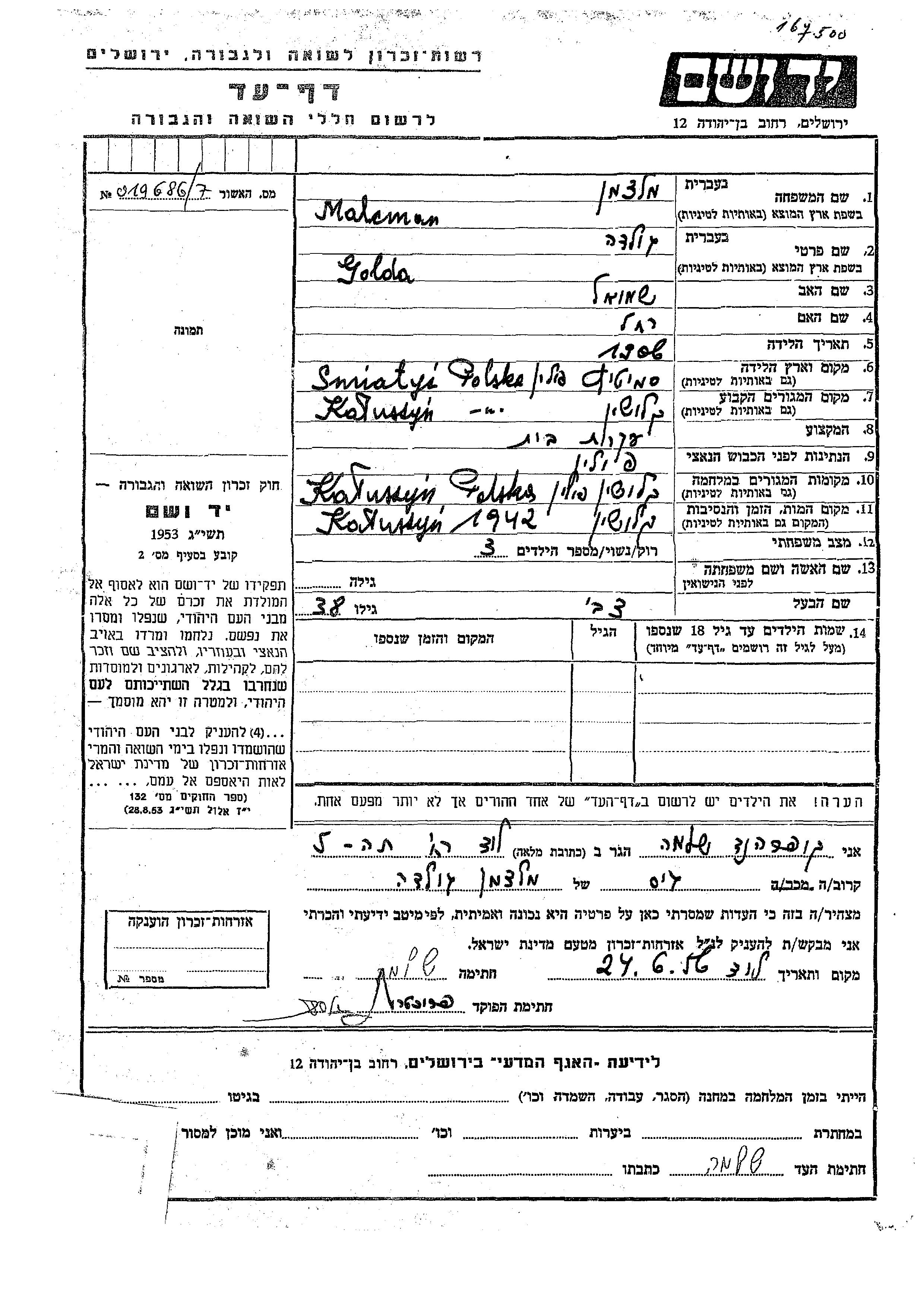 Golda wurde in der Schoah ermordet. Todesort: Kaluszyn, Polen im Jahr 1942.