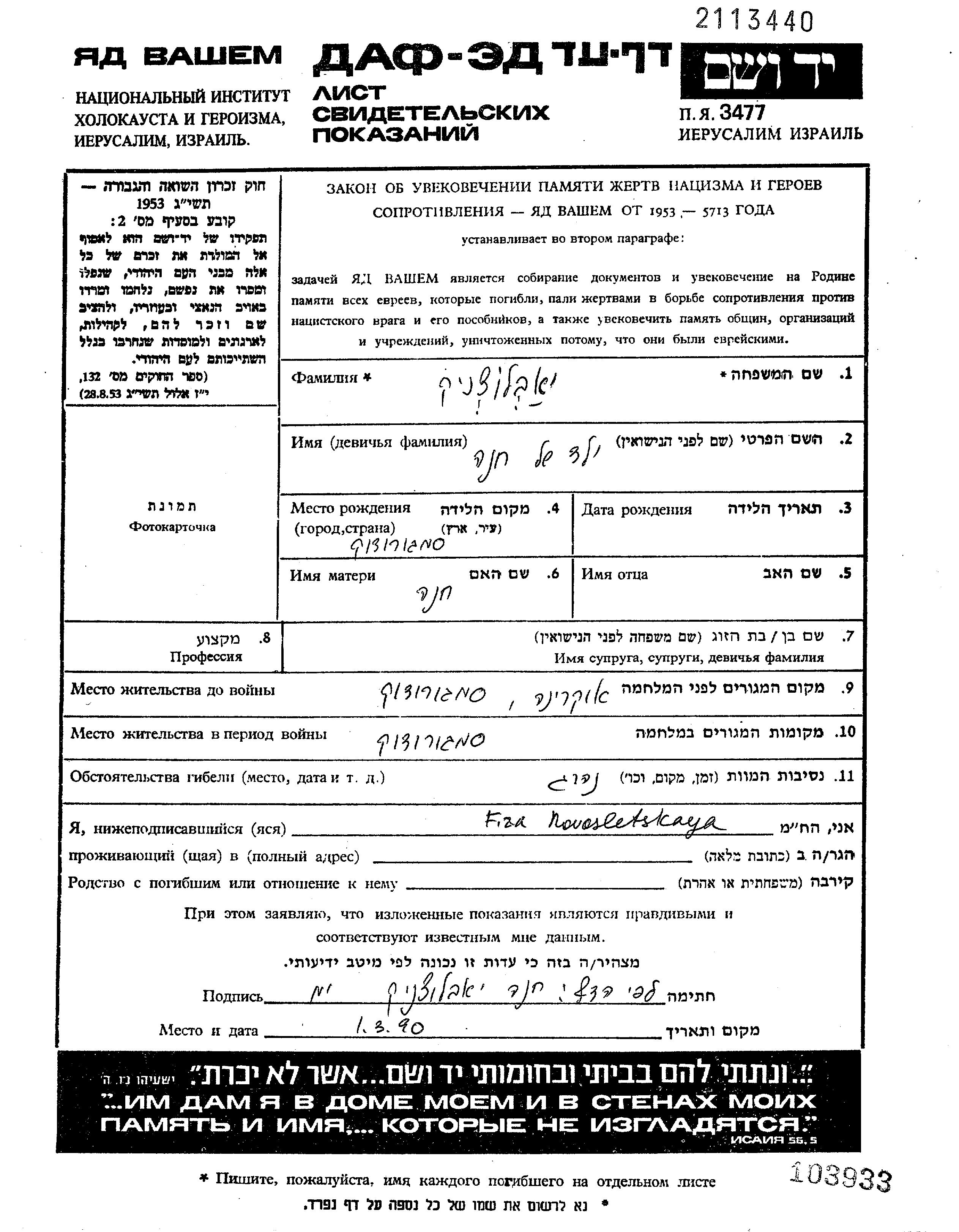 Vorname unbekannt Iablochnik wurde in Samgorodok, Ukraine (UdSSR) geboren. Er war der Sohn von Khana. Er war Kind. Vor dem Zweiten Weltkrieg lebte er in Samgorodok, Ukraine (UdSSR). Während des Krieges war er in Samgorodok, Ukraine (UdSSR).