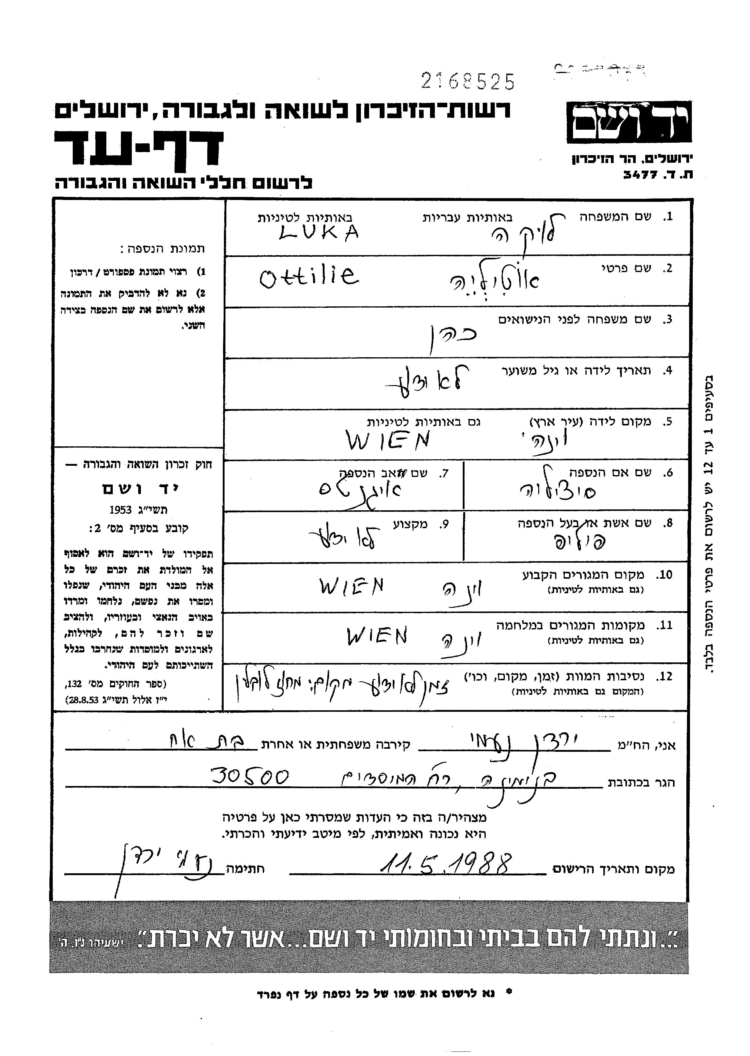 Otilia Luka, geb. Kohen wurde in Wien, Österreich geboren. Sie war die Tochter von Ignots und Sesilia. Vor dem Zweiten Weltkrieg lebte sie in Wien, Österreich. Während des Krieges war sie in Wien, Österreich.