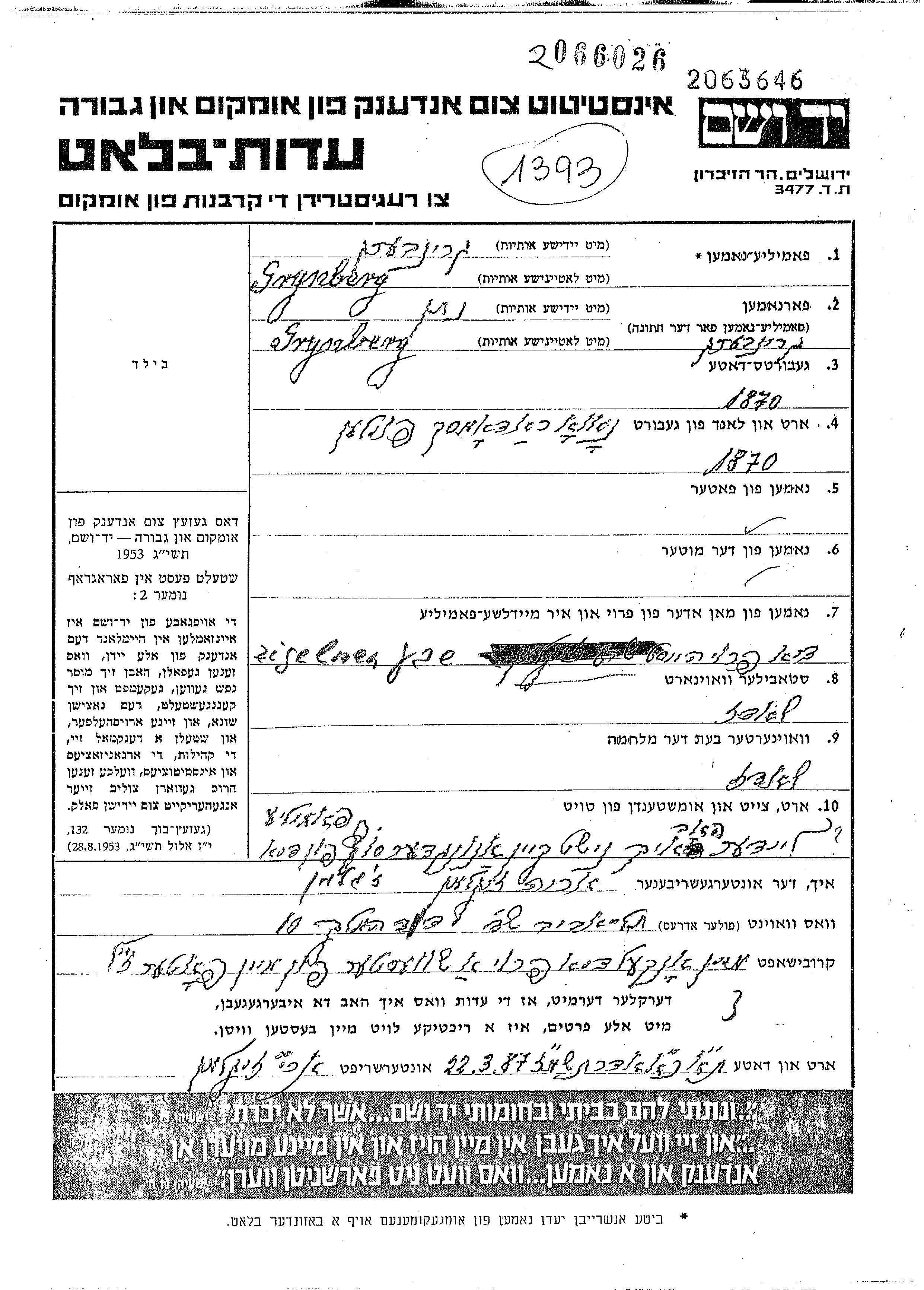 Grynberg Sheva Lodz, Polen Gedenkblatt