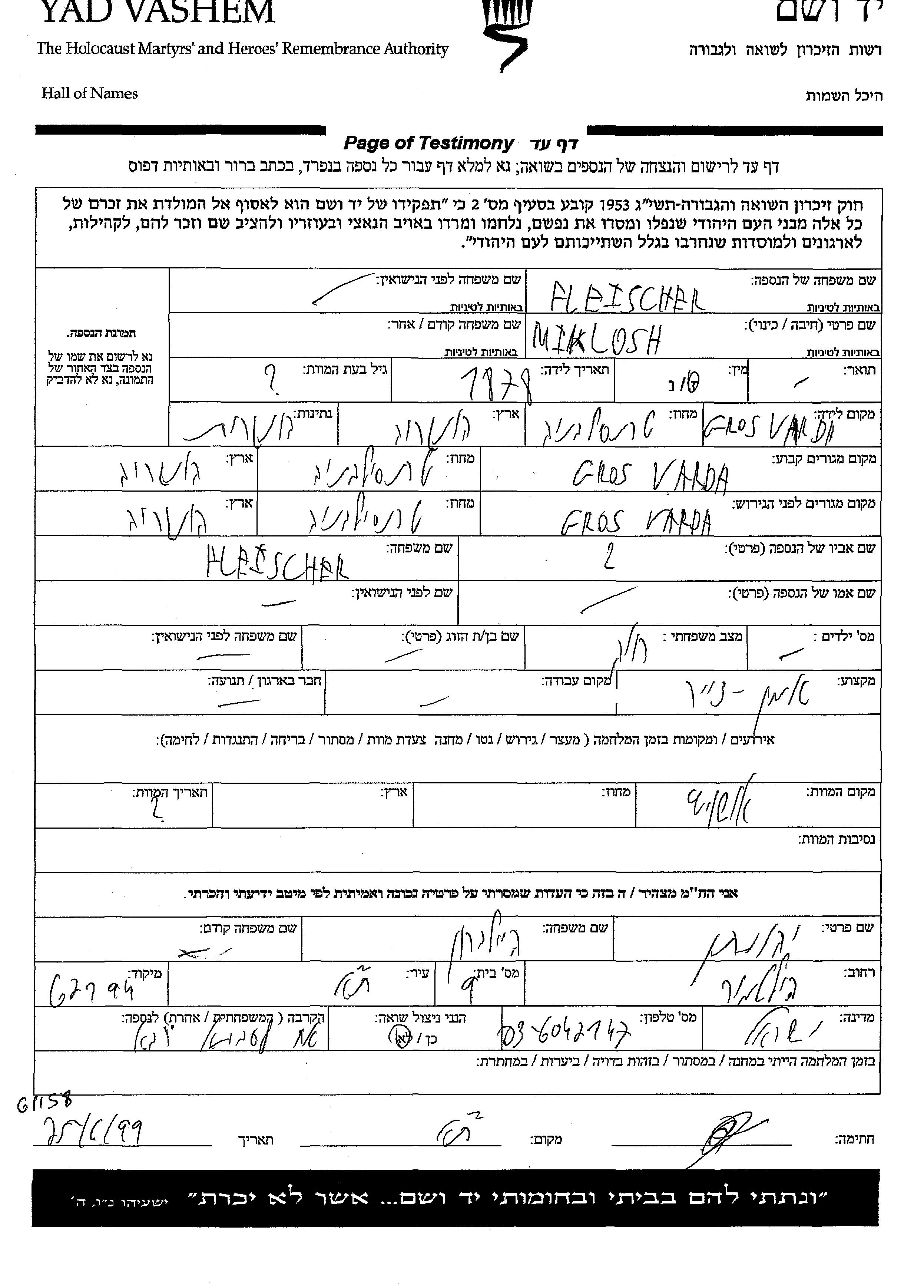Miklosh wurde in der Schoah ermordet. Todesort: Auschwitz, Polen.