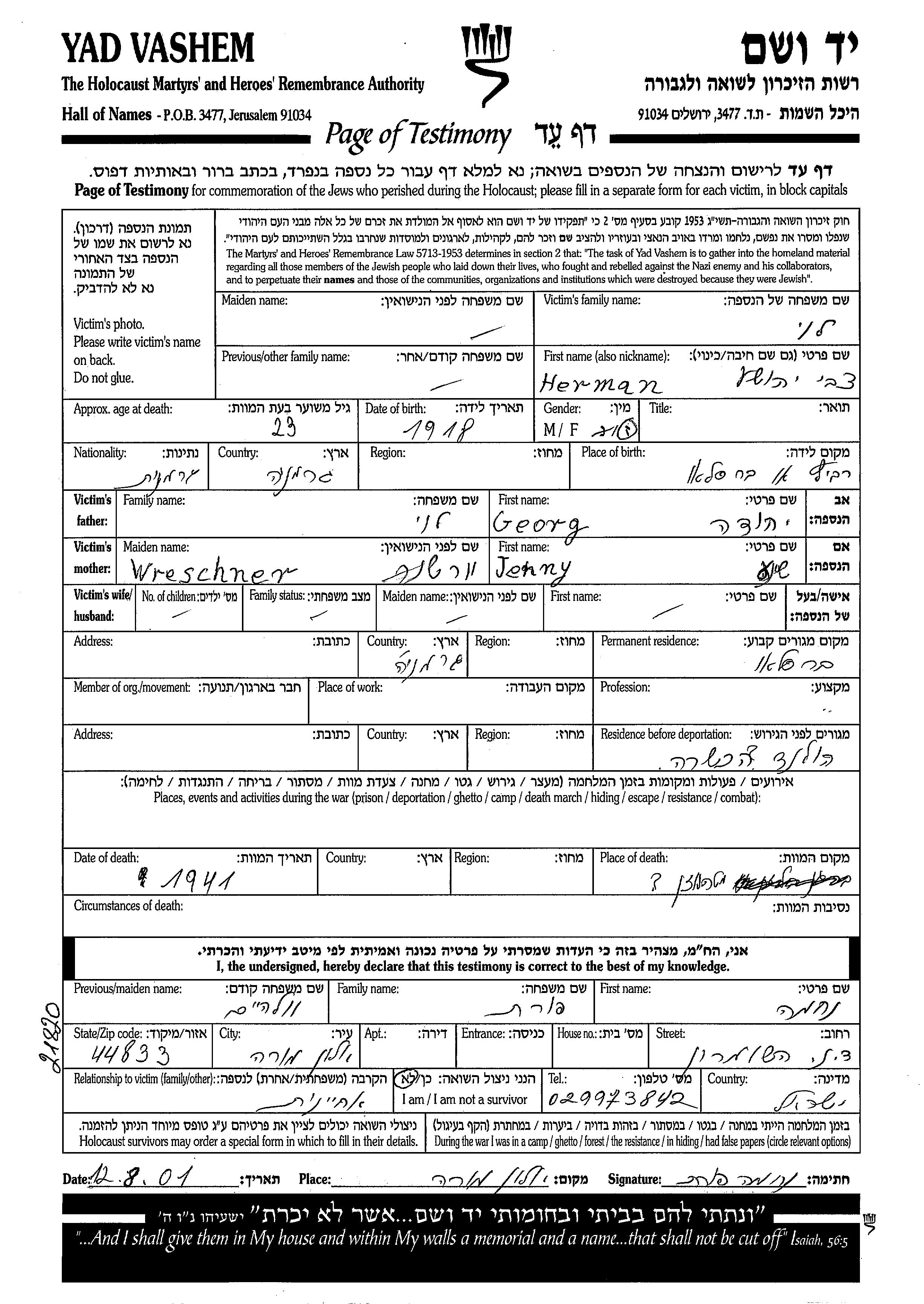 Yehoshua Herman Tzvi wurde in der Schoah ermordet. Todesort: Mauthausen, Österreich im Jahr 1941.