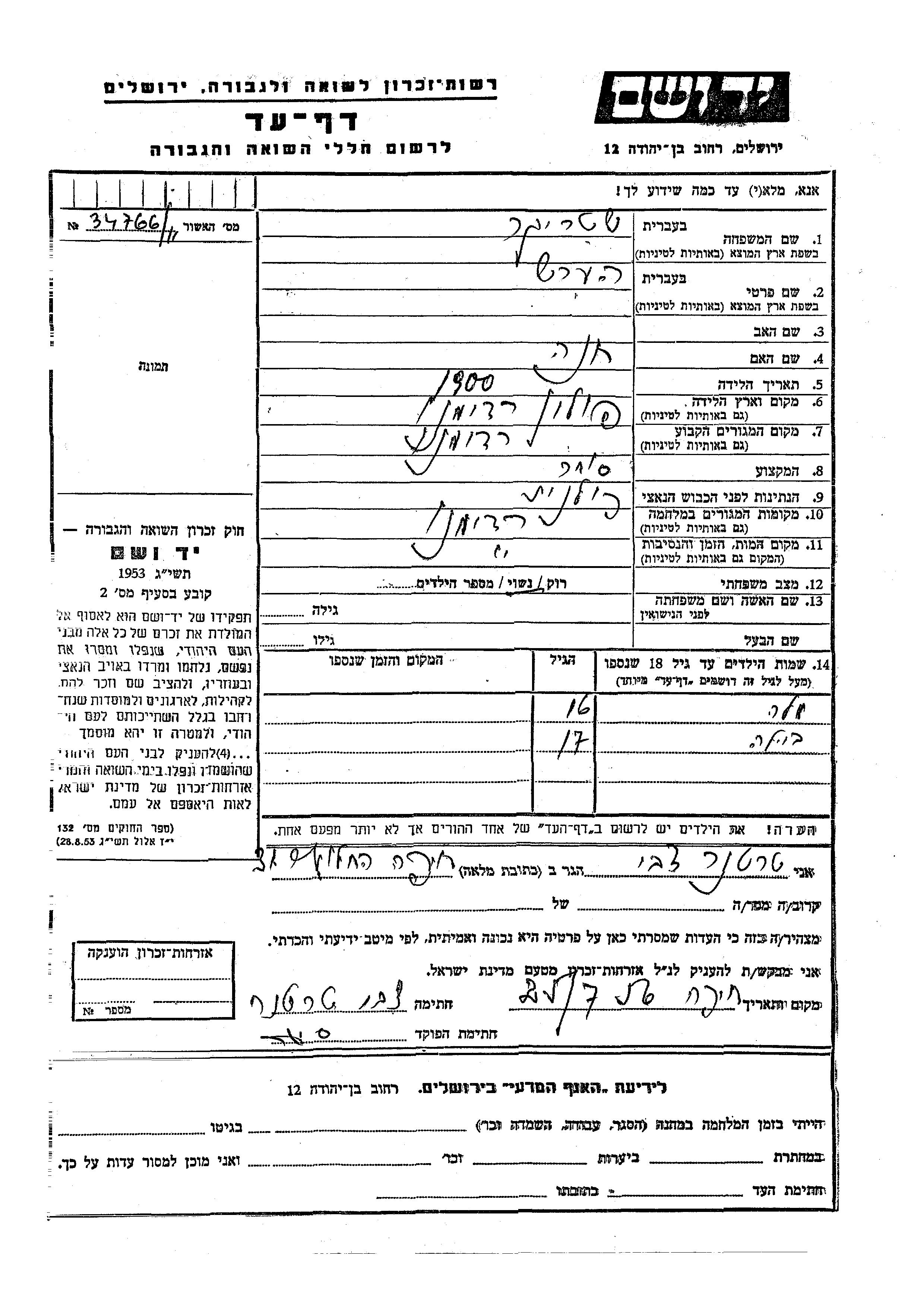 Hersh Shtriker wurde im Jahr 1900 in Radymno, Polen geboren. Er war der Sohn von Khana. Er war Kaufmann/-frau und Verheiratet. Vor dem Zweiten Weltkrieg lebte er in Radymno, Polen. Während des Krieges war er in Radymno, Polen.