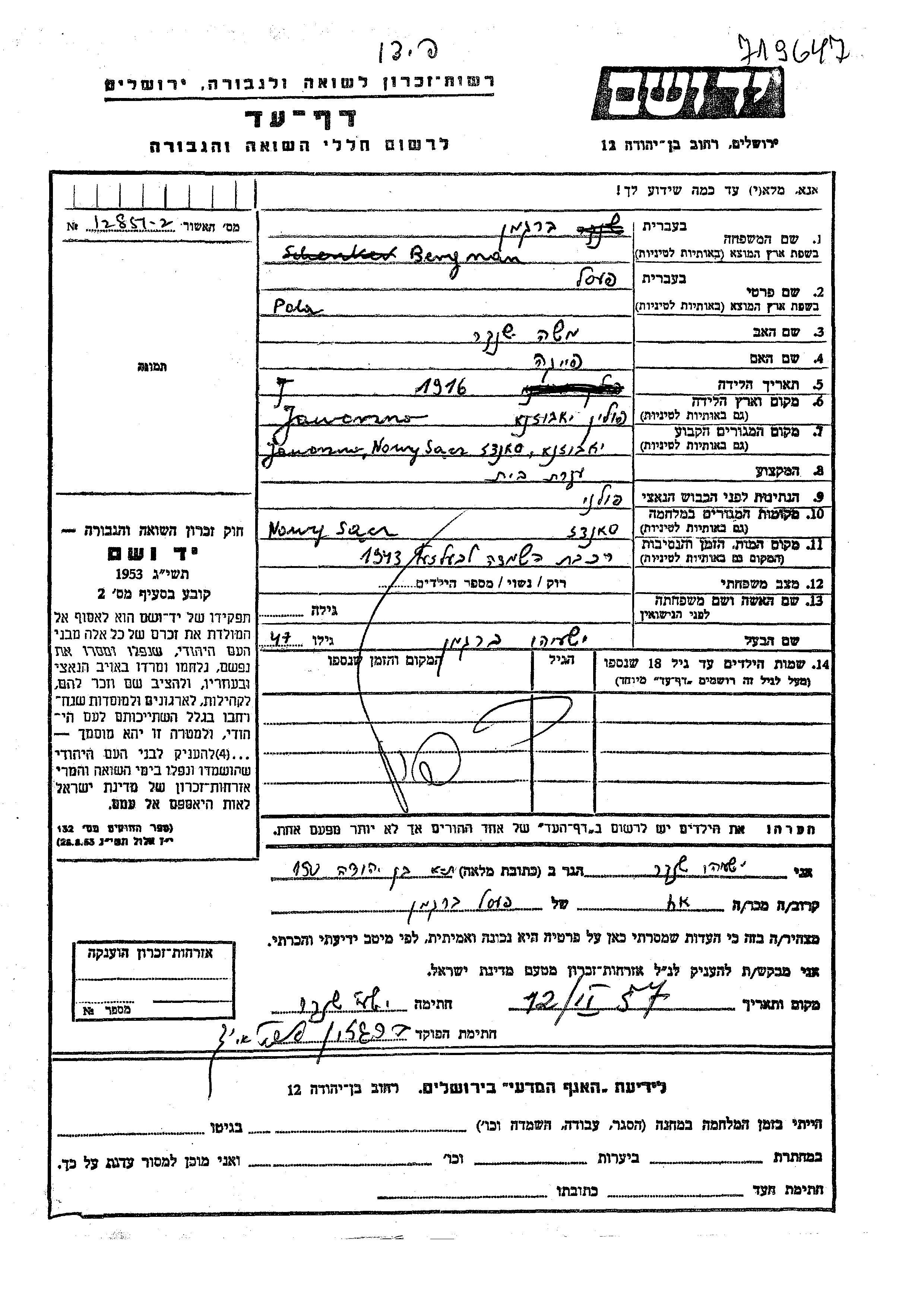 Pola Pesl Bergman wurde im Jahr 1916 in Jaworzno, Polen geboren. Sie war die Tochter von Moshe und Feiga. Sie war Hausfrau und mit Yeshayahu Verheiratet. Vor dem Zweiten Weltkrieg lebte sie in Jaworzno, Polen. Während des Krieges war sie in Nowy Sacz, Polen.