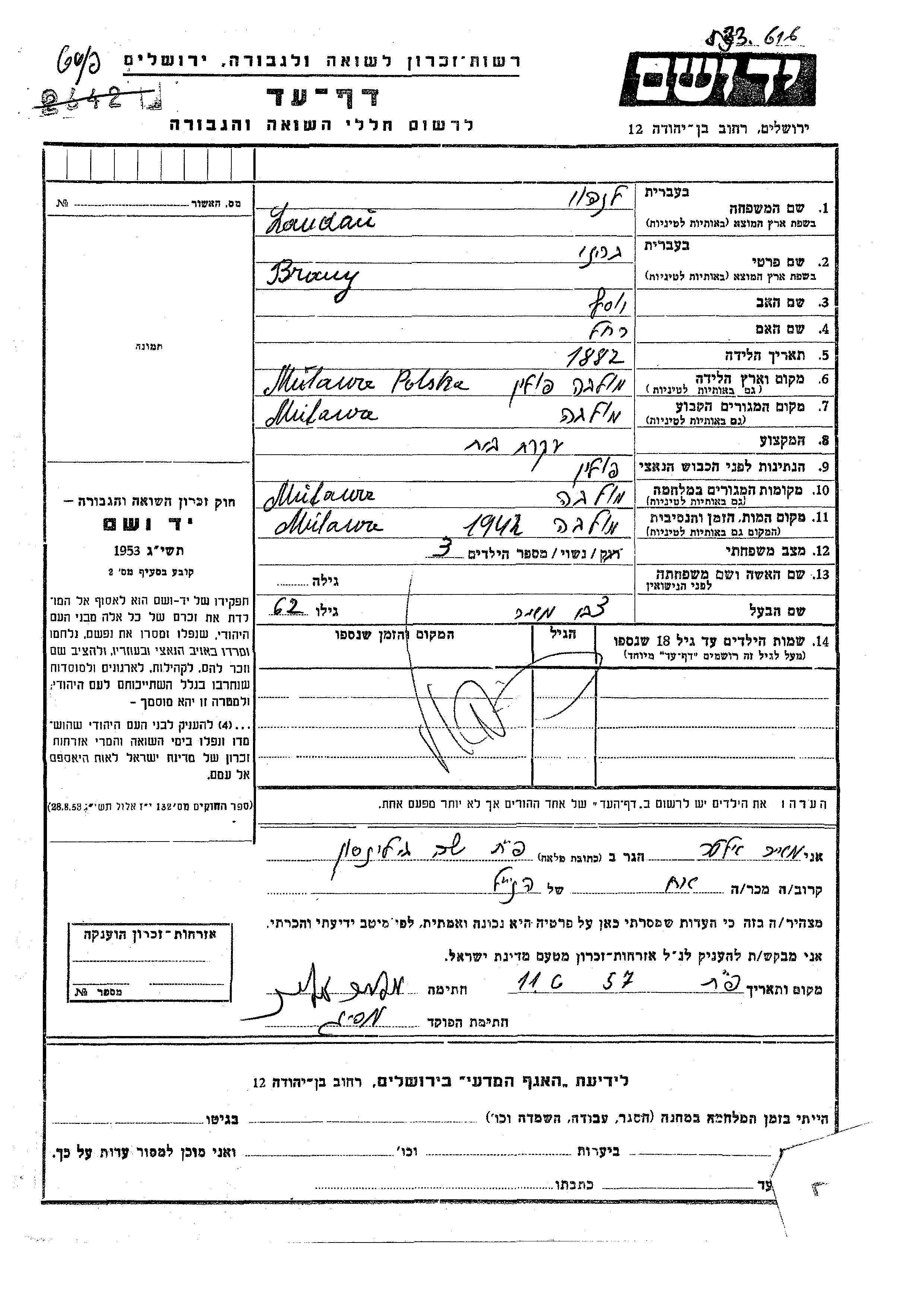 Brany wurde in der Schoah ermordet. Todesort: Mlawa, Polen im Jahr 1942.