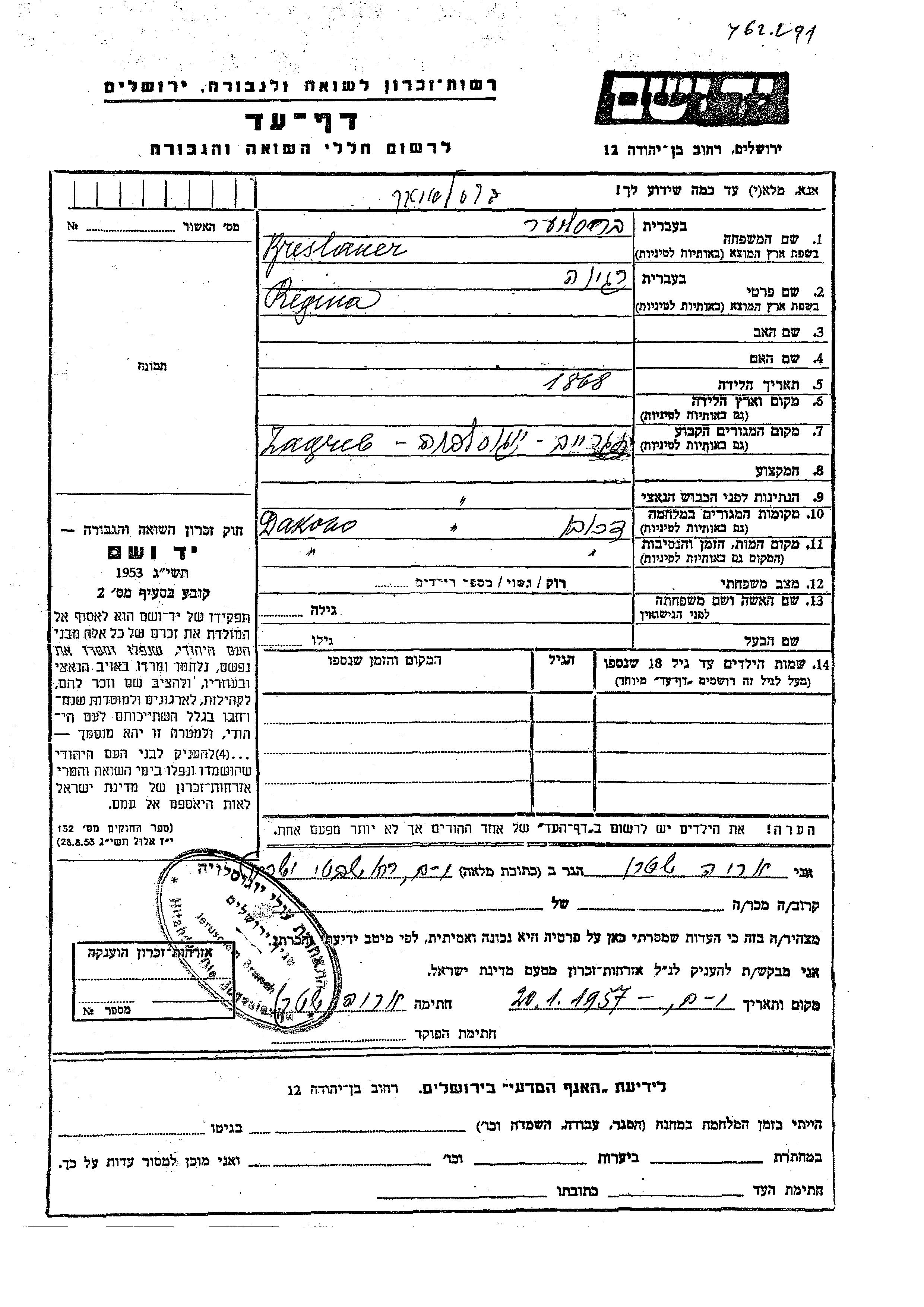 Regina wurde in der Schoah ermordet. Todesort: Dakovo, Jugoslawien.