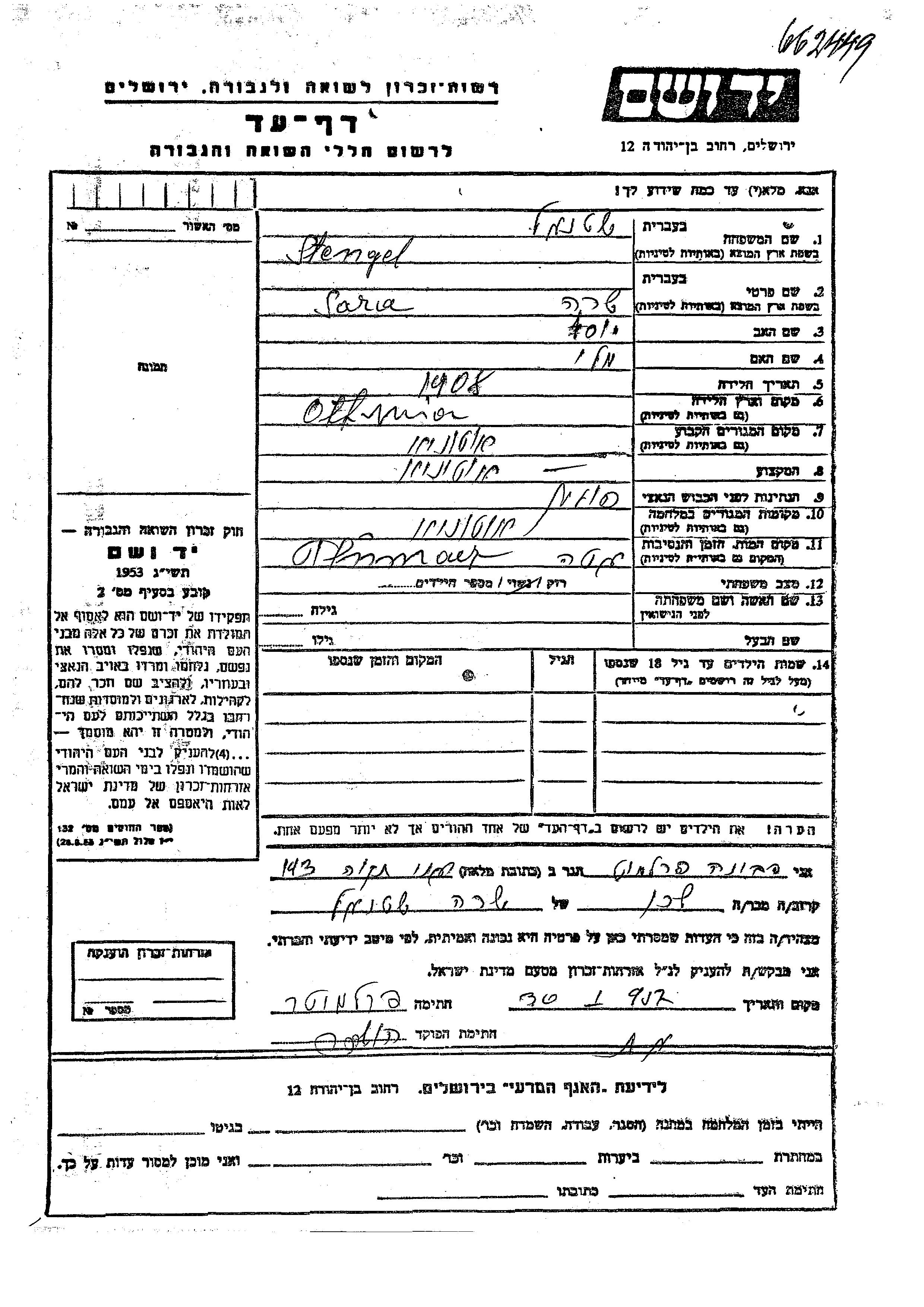 Sara Stengel wurde im Jahr 1908 in Ottynia, Polen geboren. Sie war die Tochter von Yosef und Mali. Sie war Ledig. Vor dem Zweiten Weltkrieg lebte sie in Ottynia, Polen. Während des Krieges war sie in Ottynia, Polen.