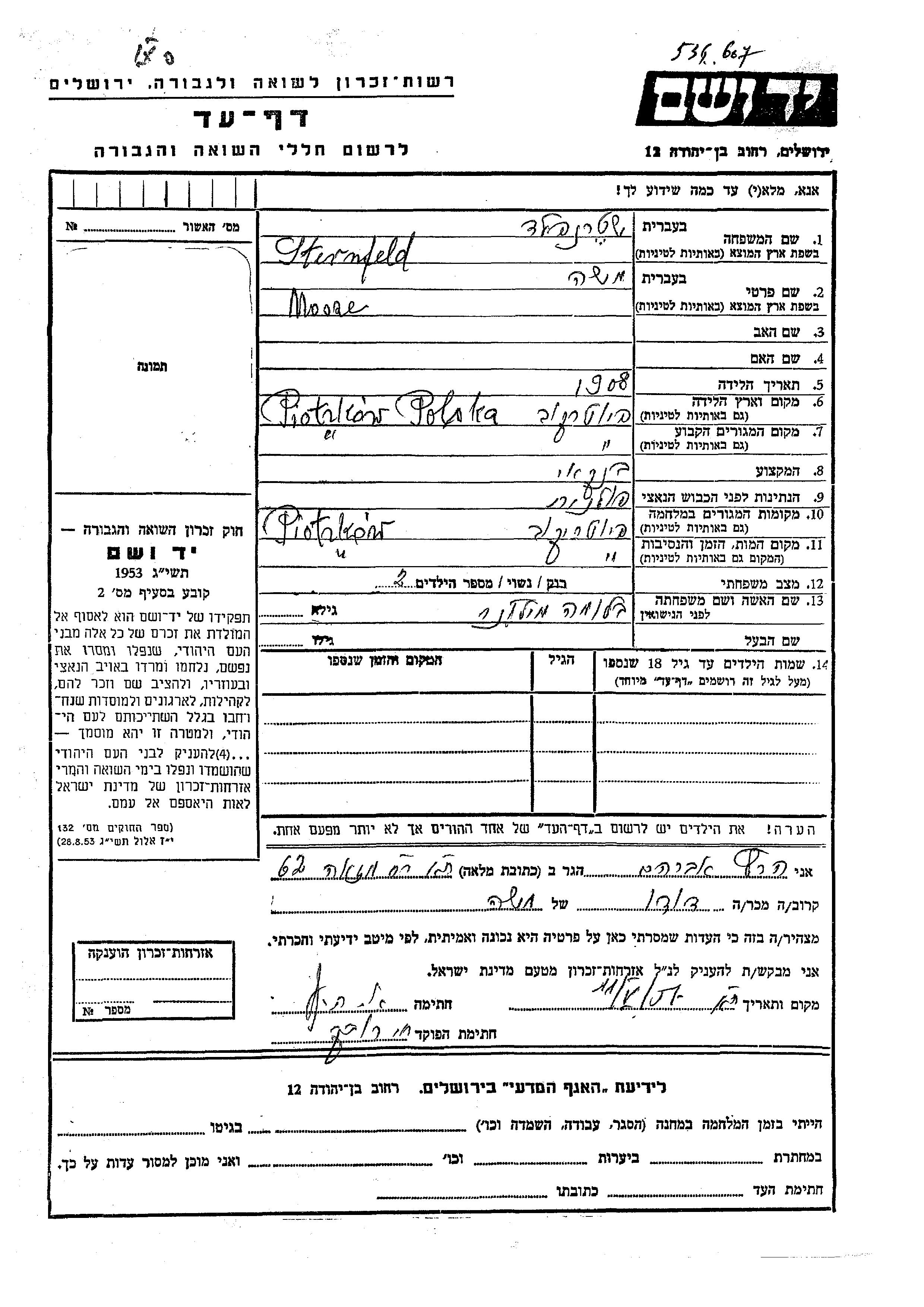 Mosze wurde in der Schoah ermordet. Todesort: Piotrkow, Polen.