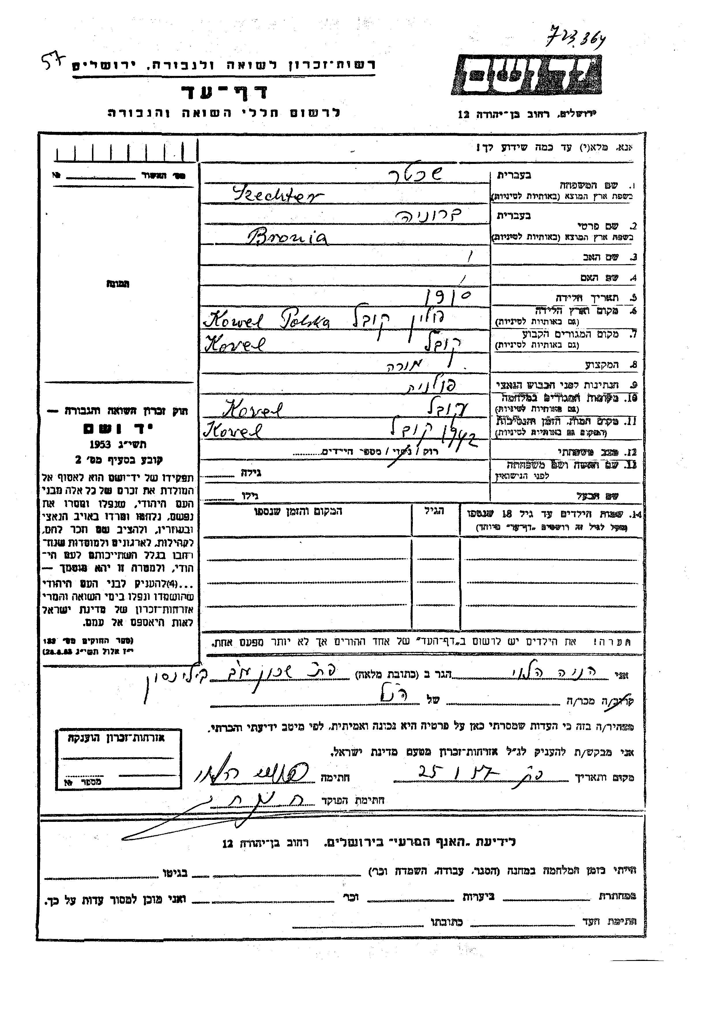 Bronia wurde in der Schoah ermordet. Todesort: Kovel, Polen im Jahr 1942.