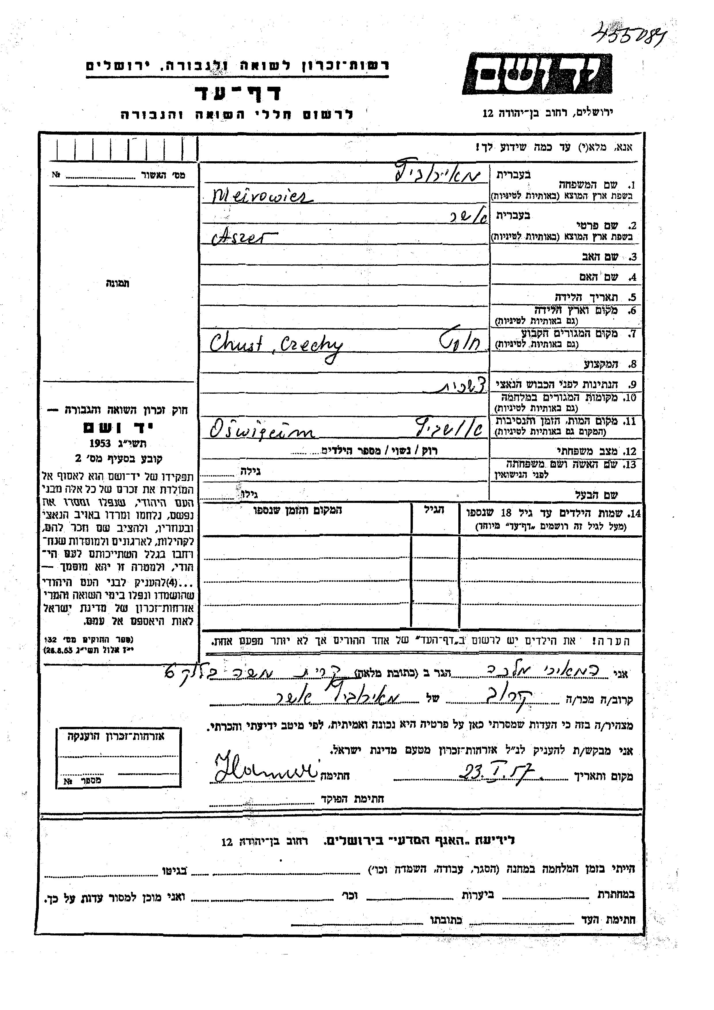 Meirowicz Aszer Chust, Tschechoslowakei Gedenkblatt