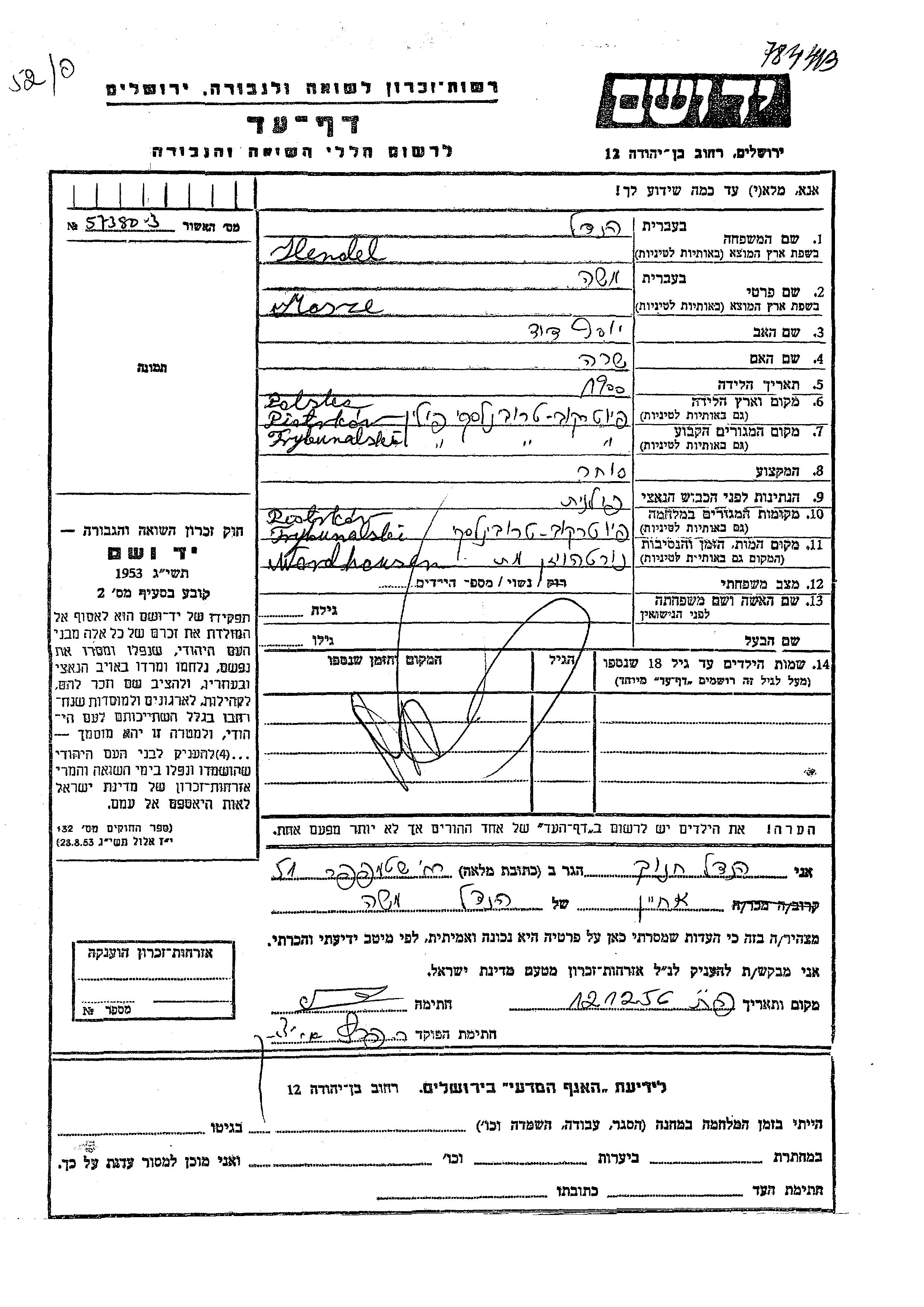 Mosze Hendel wurde im Jahr 1900 in Piotrkow Kujawski, Polen geboren. Er war der Sohn von Yosef David und Sara. Er war Kaufmann/-frau und Verheiratet. Vor dem Zweiten Weltkrieg lebte er in Piotrkow Kujawski, Polen. Während des Krieges war er in Piotrkow Kujawski, Polen.