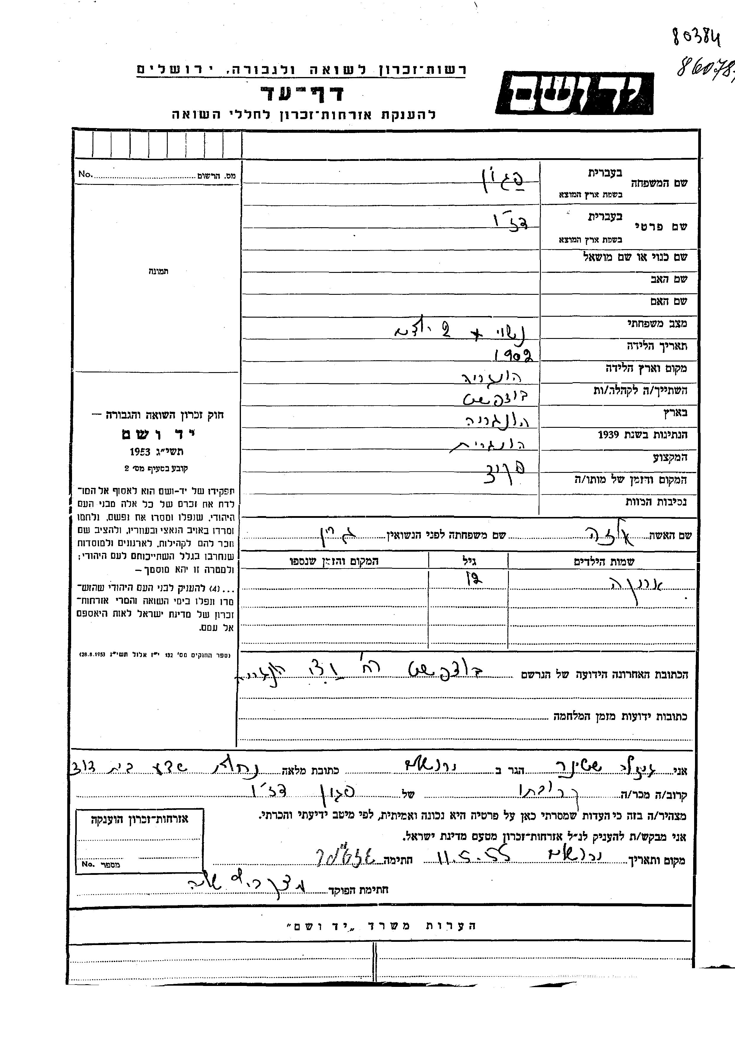 Yad Vashem - Gedenkblätter Sammlung