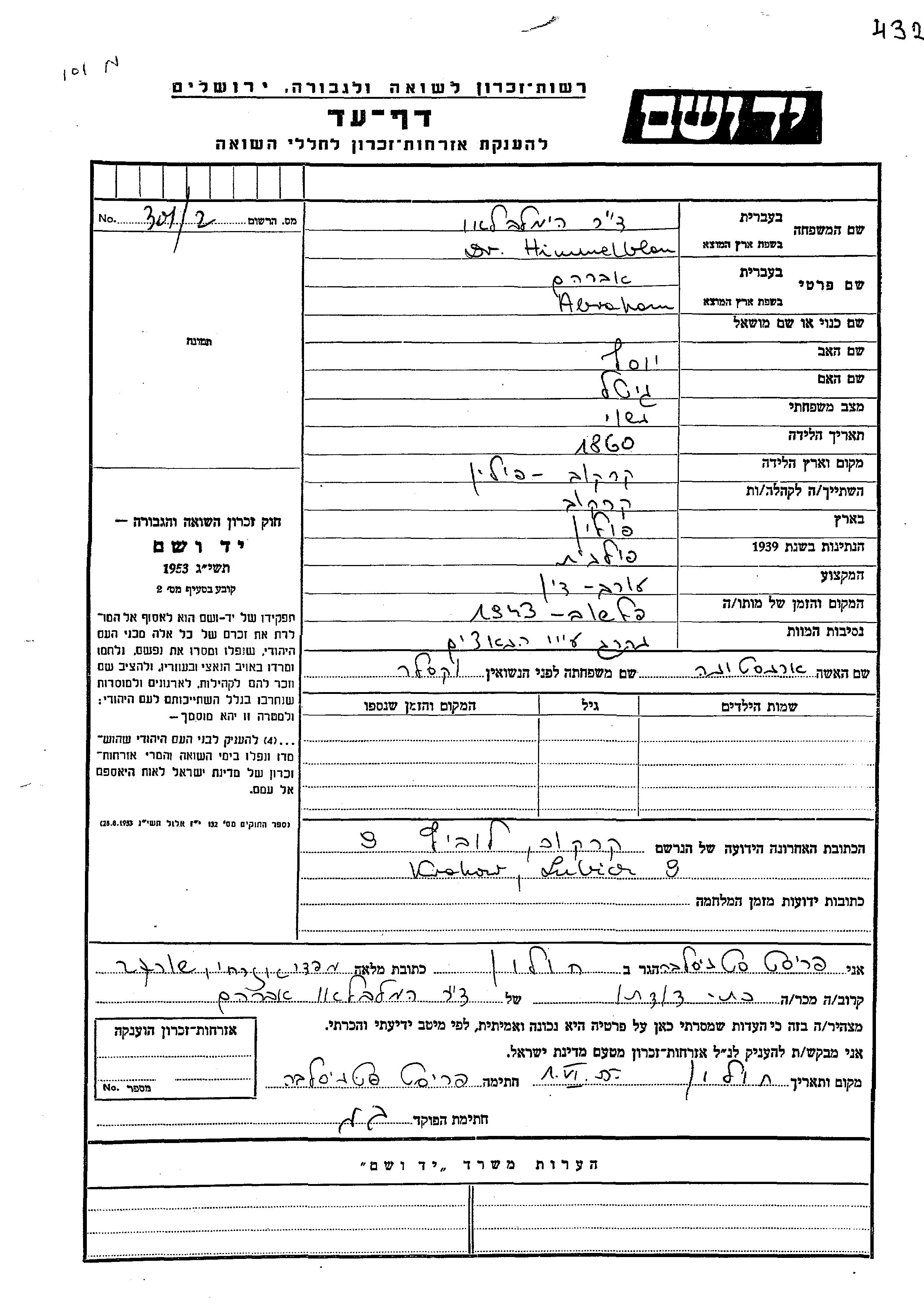 Dr. Himmelblau wurde in der Schoah ermordet. Todesort: Plaszow, Polen im Jahr 1943.