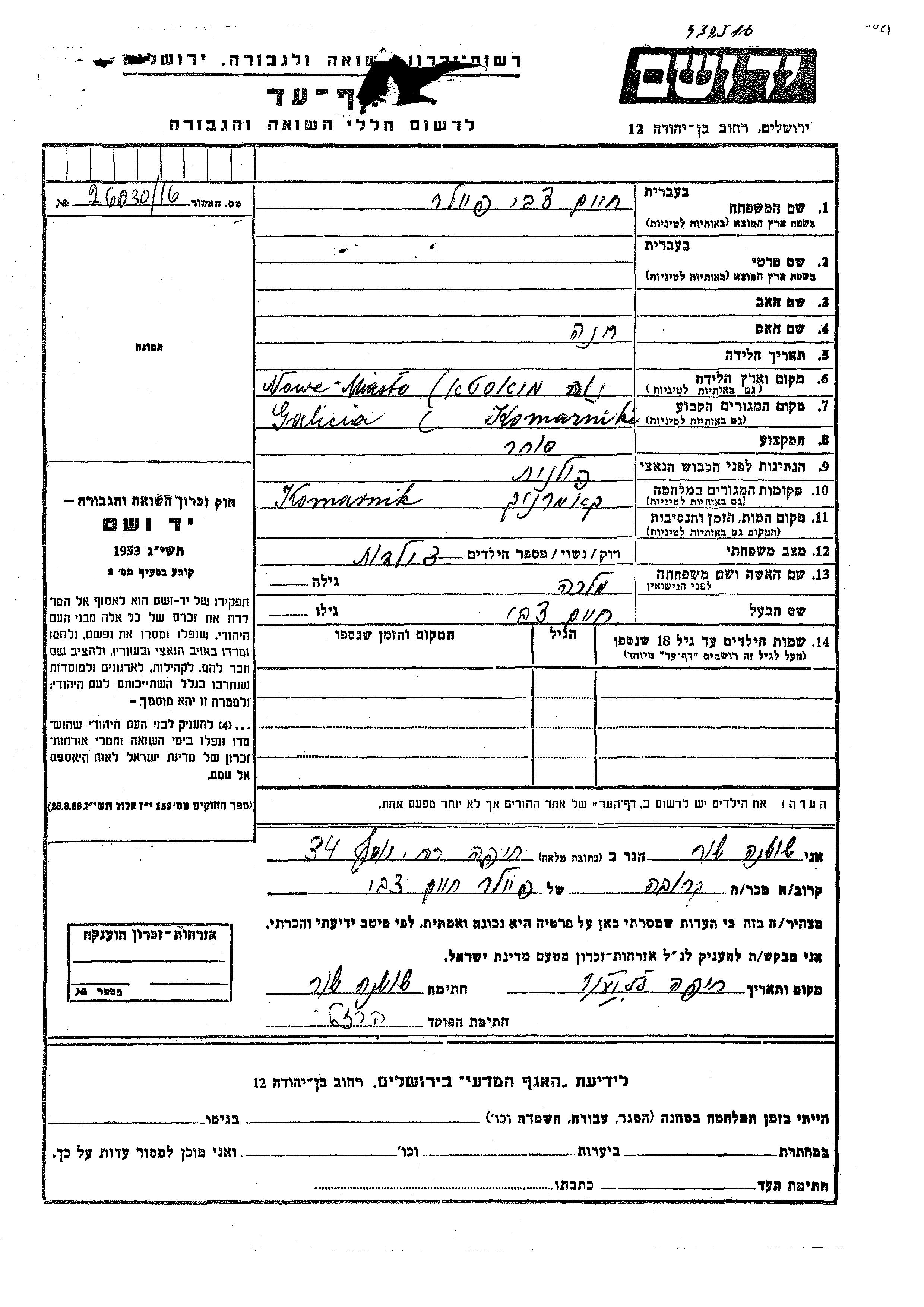 Feiler Khaim Tzvi Komarniki, Polen Gedenkblatt