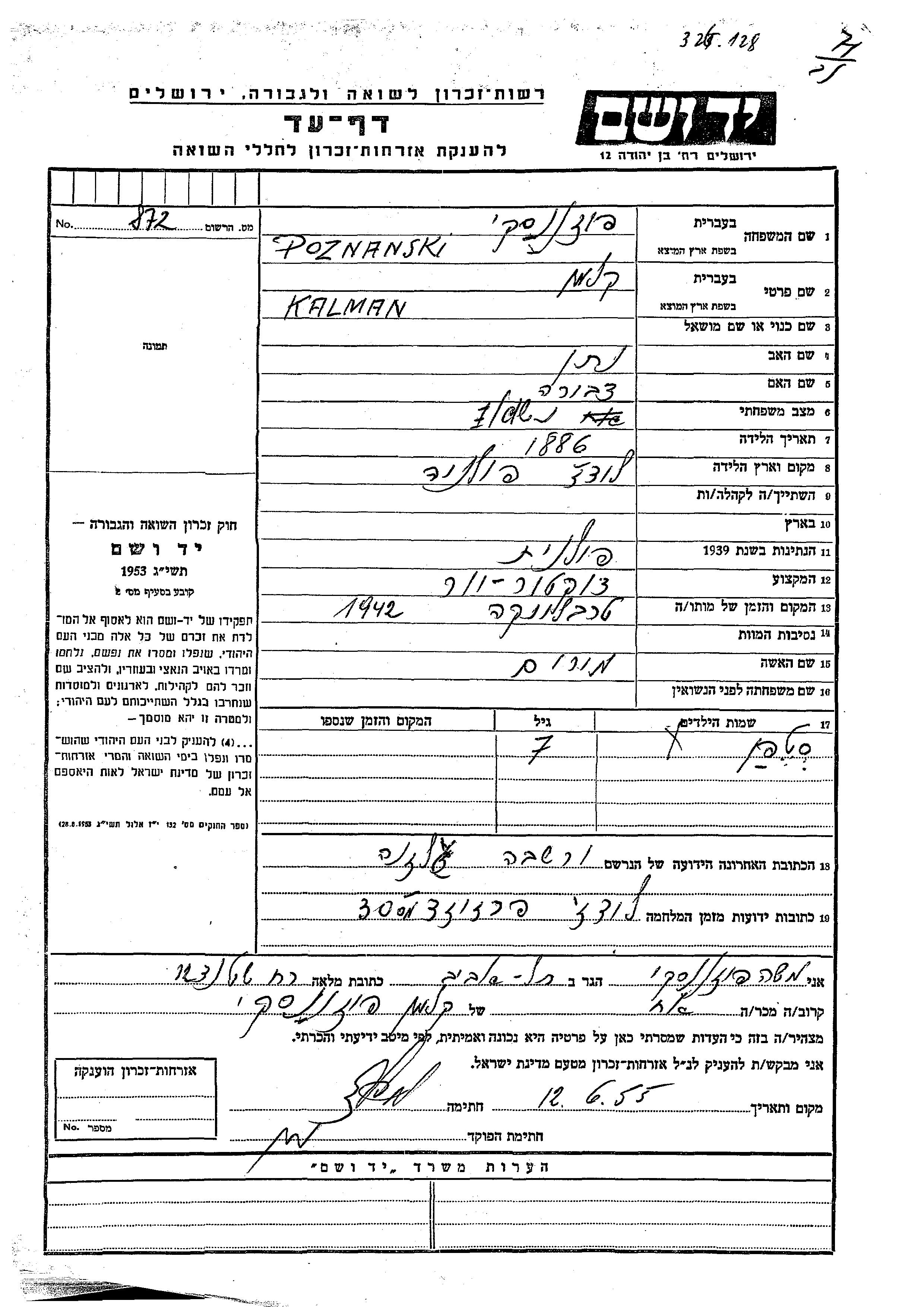 Kalman wurde in der Schoah ermordet. Todesort: Treblinka, Polen im Jahr 1942.