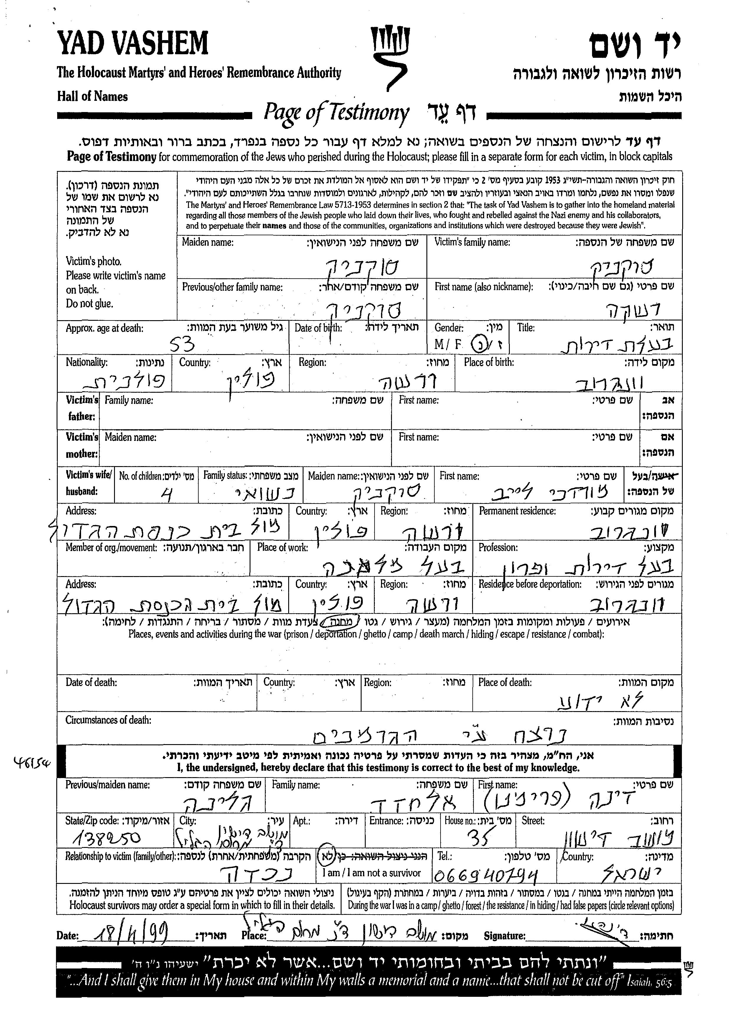 Rashka Sukenik, geb. Sukenik wurde in Wegrow, Polen geboren. Sie war Kürschner/-in und mit Leib Mordekhai Verheiratet. Vor dem Zweiten Weltkrieg lebte sie in Wegrow, Polen. Während des Krieges war sie in Lager.