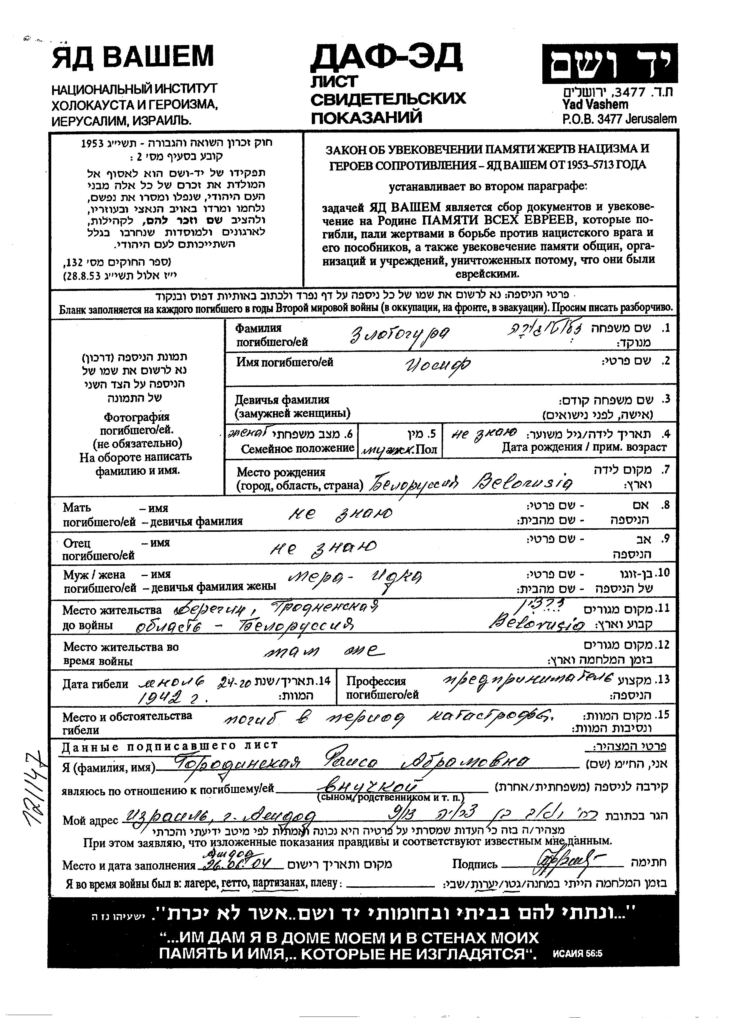 Iosif wurde in der Schoah ermordet. Todesort: unbekannt im Jahr 20/07/1942.