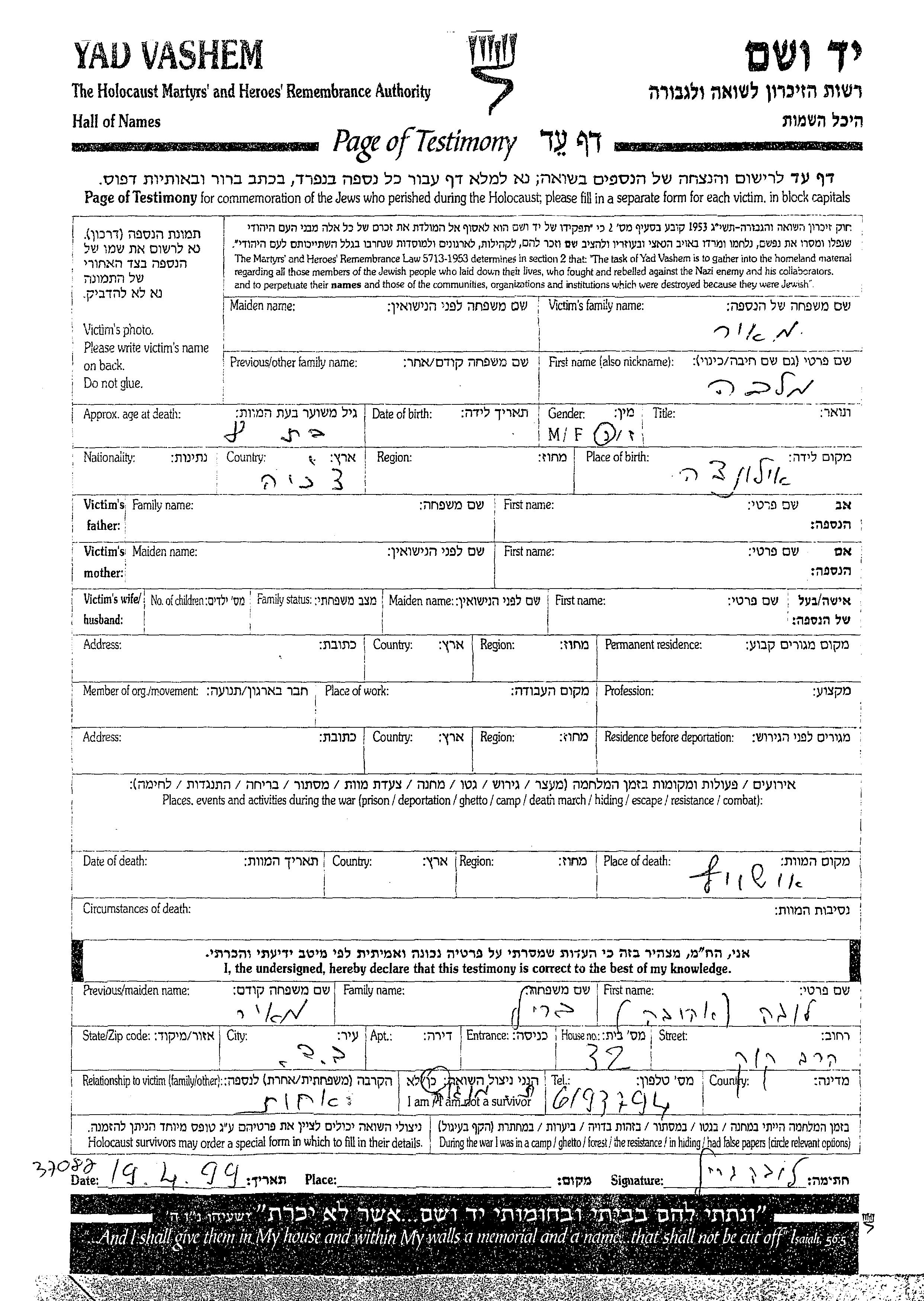 Malka wurde in der Schoah ermordet. Todesort: Auschwitz, Polen.
