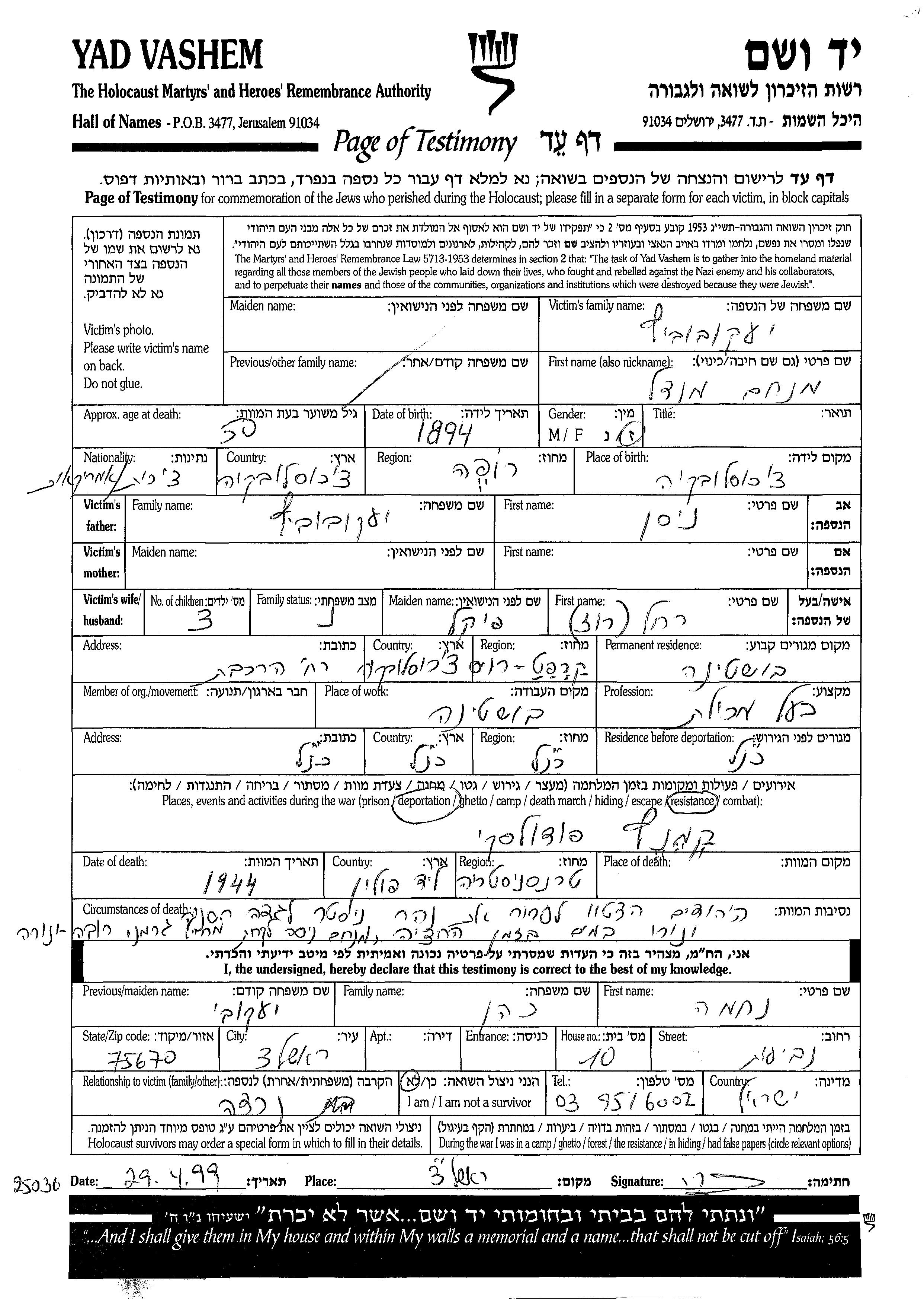 Menakhem Mendel Yakubovitz wurde im Jahr 1894 in Ropa, Tschechoslowakei geboren. Er war der Sohn von Nisan. Er war Besitzer/-in eines lebensmittelgeschäfts und mit Roza Rakhel, geb. Pikel Verheiratet. Vor dem Zweiten Weltkrieg lebte er in Bushtina, Tschechoslowakei. Während des Krieges war er in Bushtina, Tschechoslowakei.