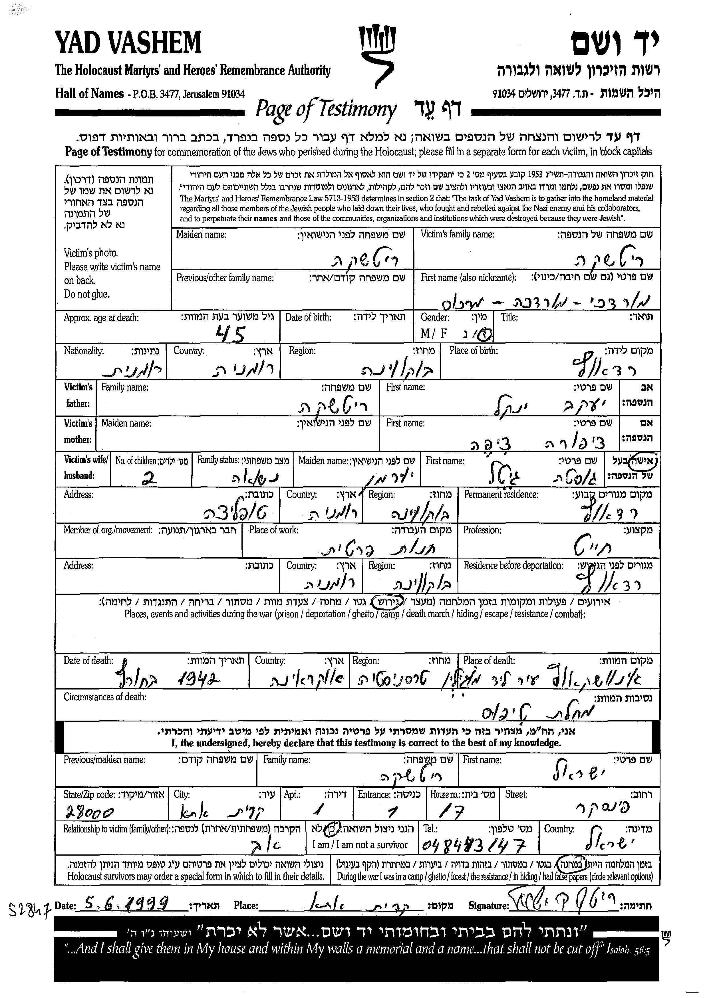Markus Mordechai wurde in der Schoah ermordet. Todesort: Vascauti, Rumänien im Jahr 01/1942.