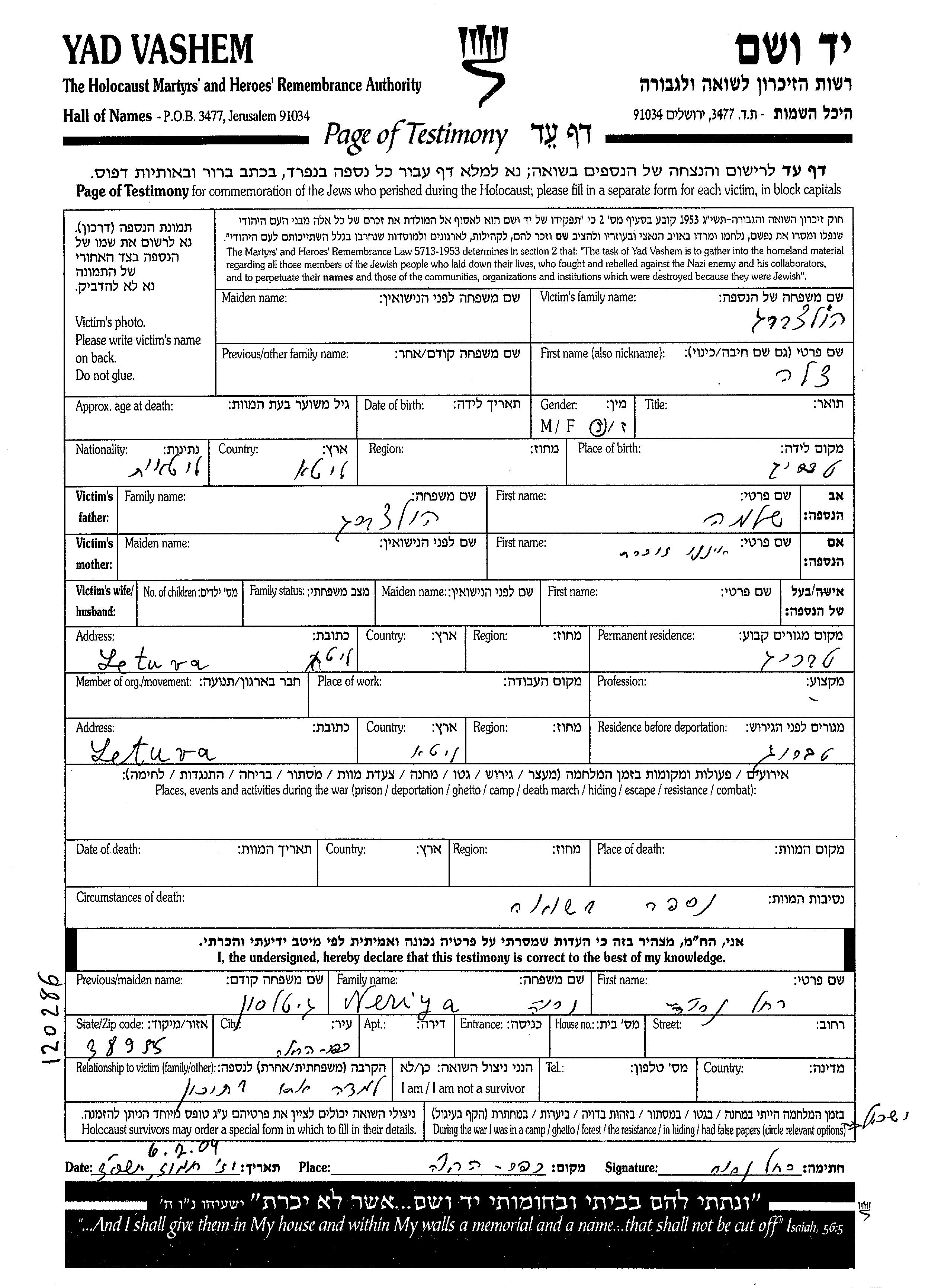 Holtzberg Tzila Tavrig, Litauen Gedenkblatt