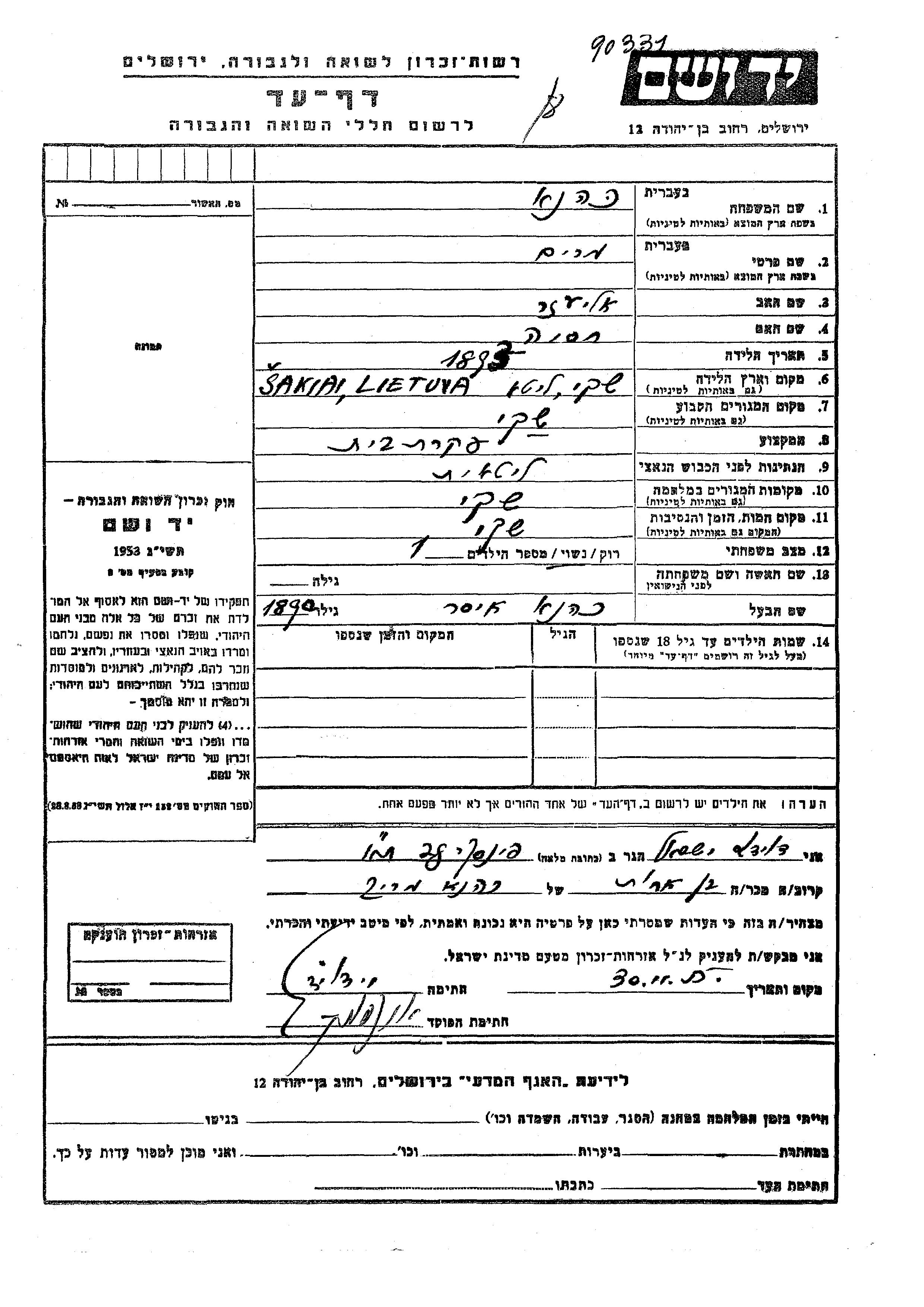 Miriam wurde in der Schoah ermordet. Todesort: Sakiai, Litauen.