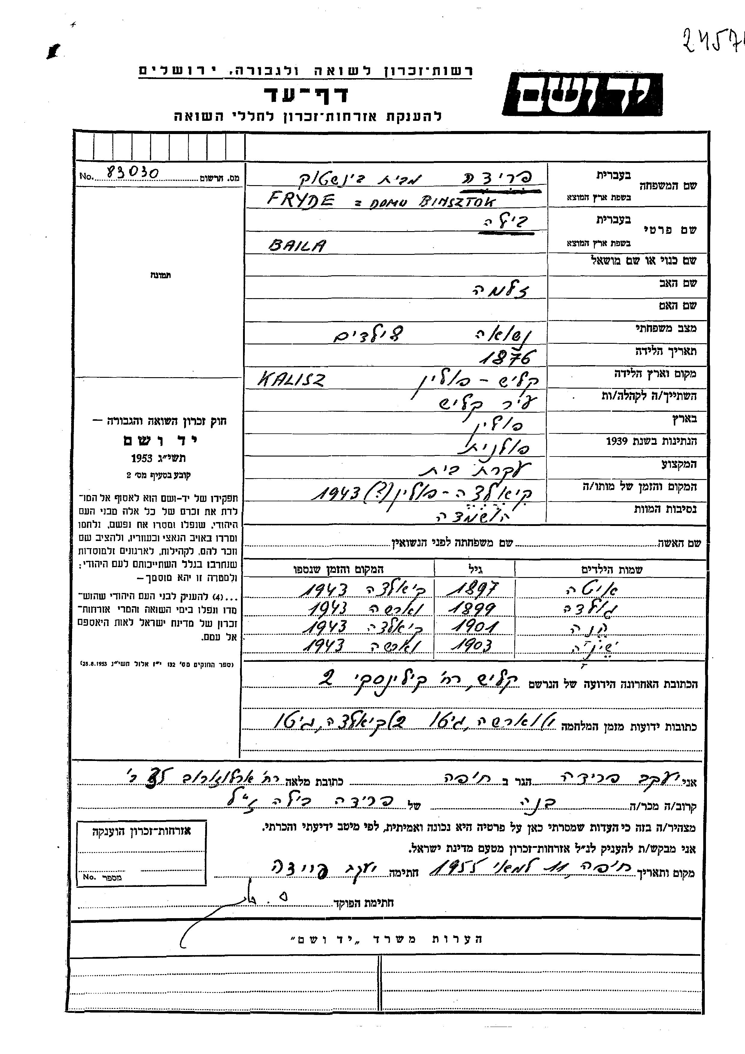 Suche nach einem Todesjahr im Zeitraum der Holocaust: 1933 bis 1945. Bitte wählen Sie 'Exakt' im Auswahlmenü, um nur nach einem einzelnen Jahr zu suchen, alternativ können Sie die flexibleren Optionen '+/- 2 Jahre' oder '+/- 5 Jahre' wählen.