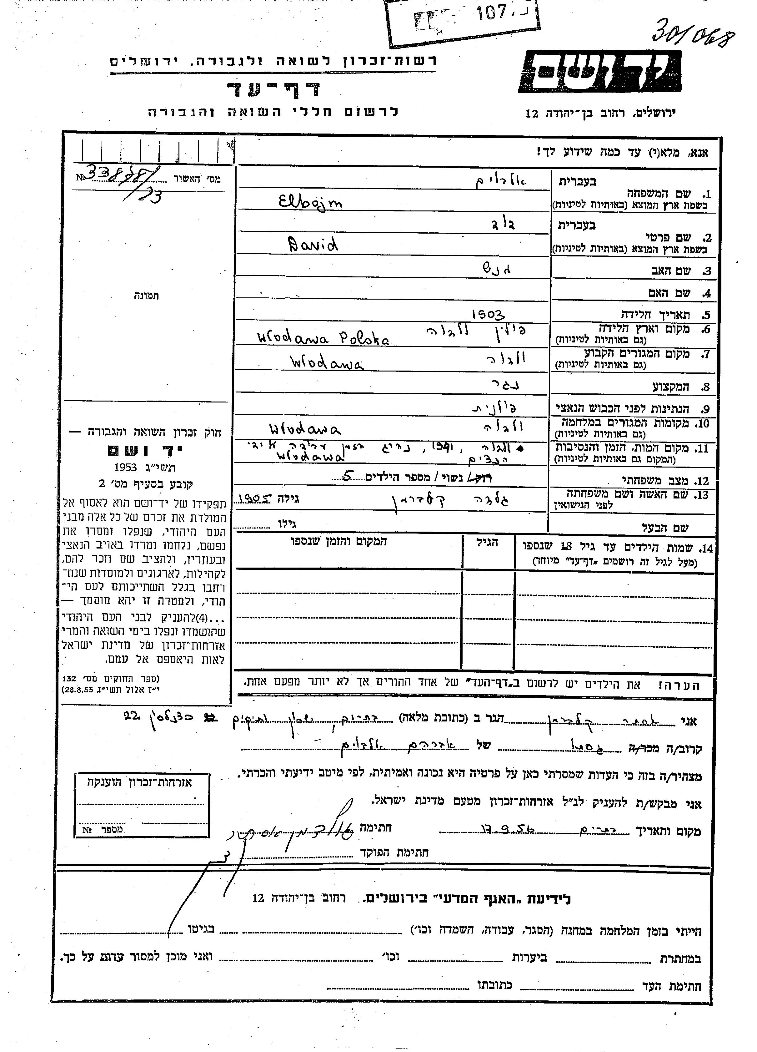 David wurde in der Schoah ermordet. Todesort: Wlodawa, Polen im Jahr 1941.