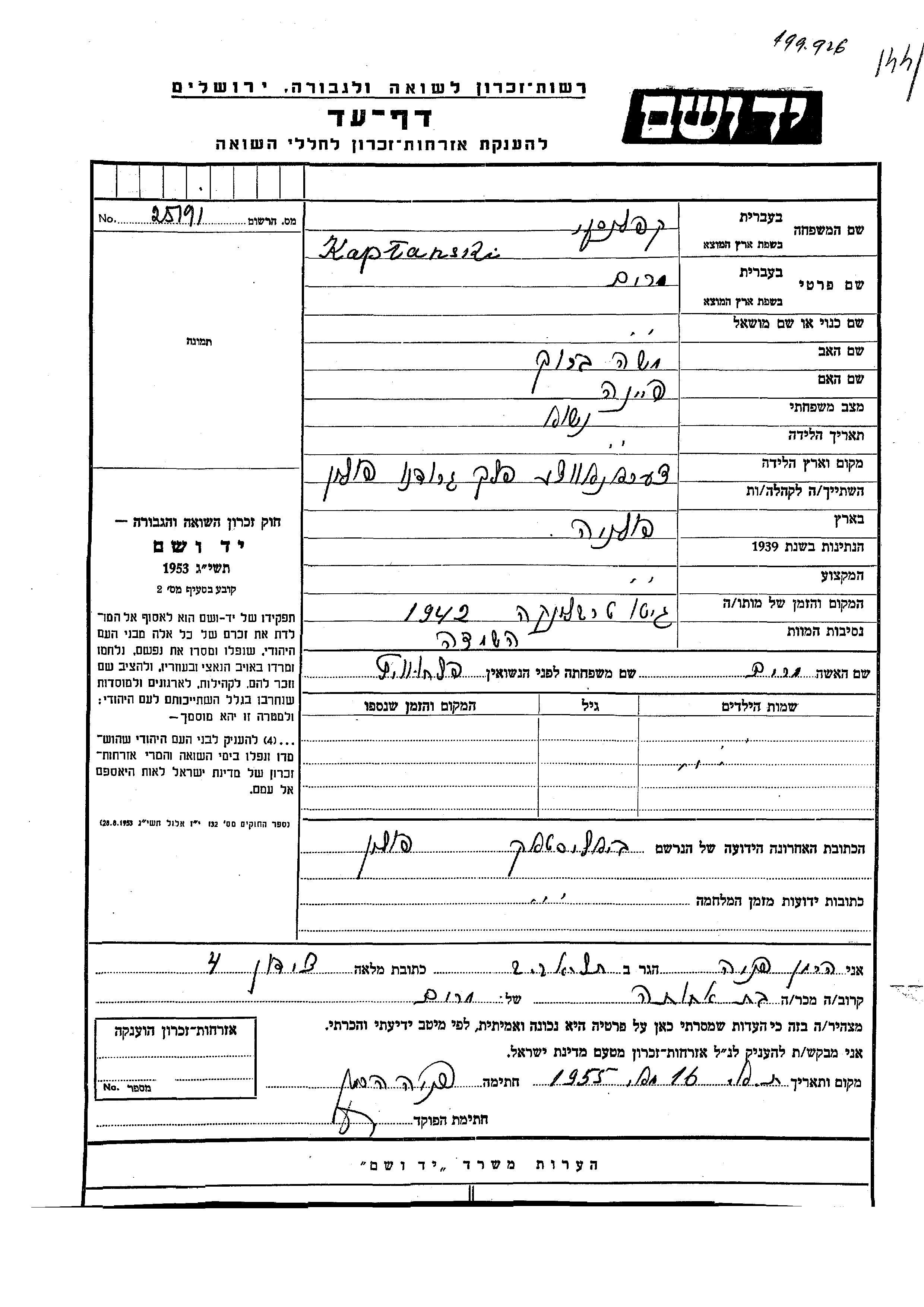 Suche nach einem Todesjahr im Zeitraum der Holocaust: 1933 bis 1945. Bitte wählen Sie 'Exakt' im Auswahlmenü, um nur nach einem einzelnen Jahr zu suchen, alternativ können Sie die flexibleren Optionen '+/- 2 Jahre' oder '+/- 5 Jahre' wählen.