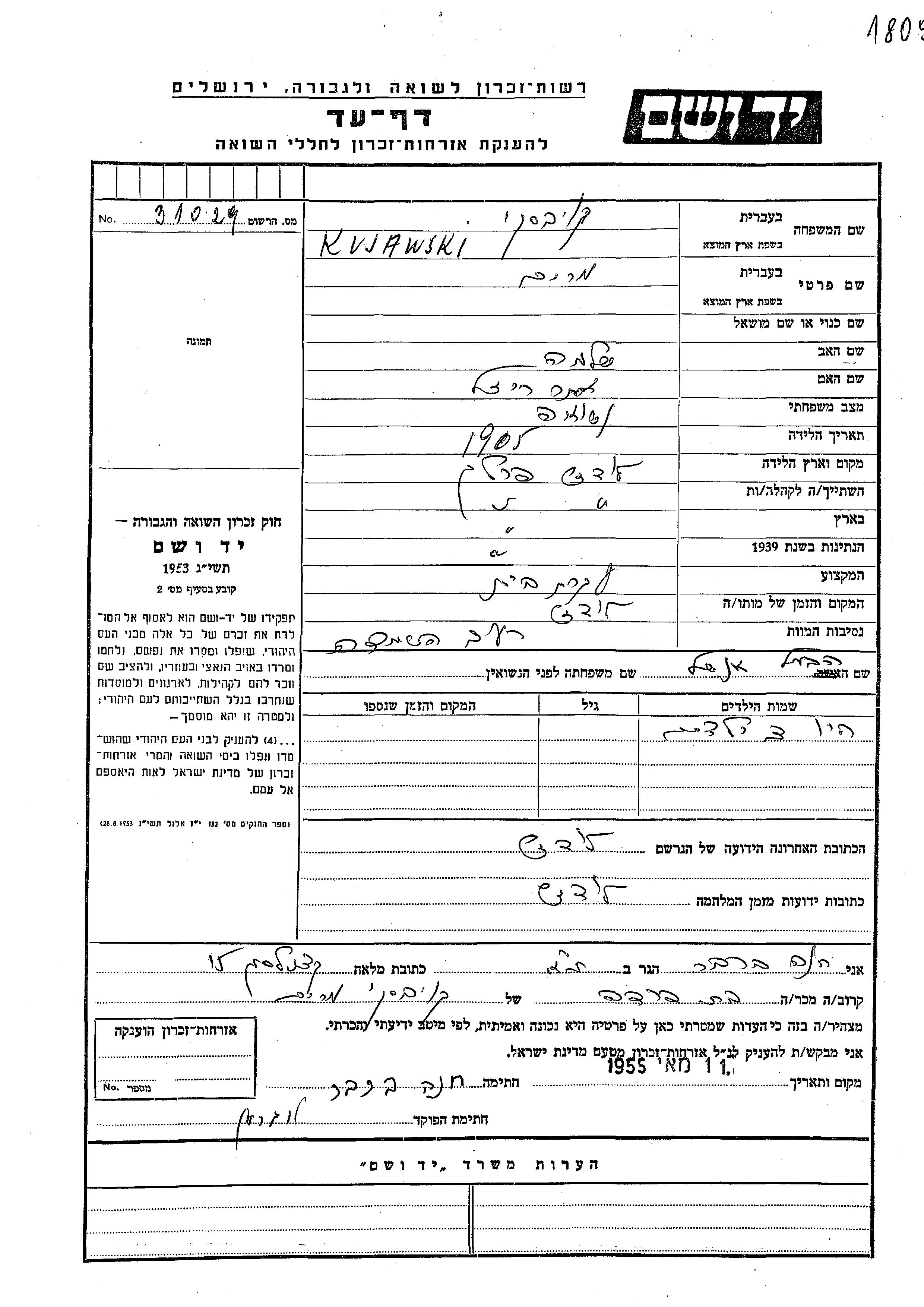 Kujawski Miriam 1905 Lodz, Polen Gedenkblatt