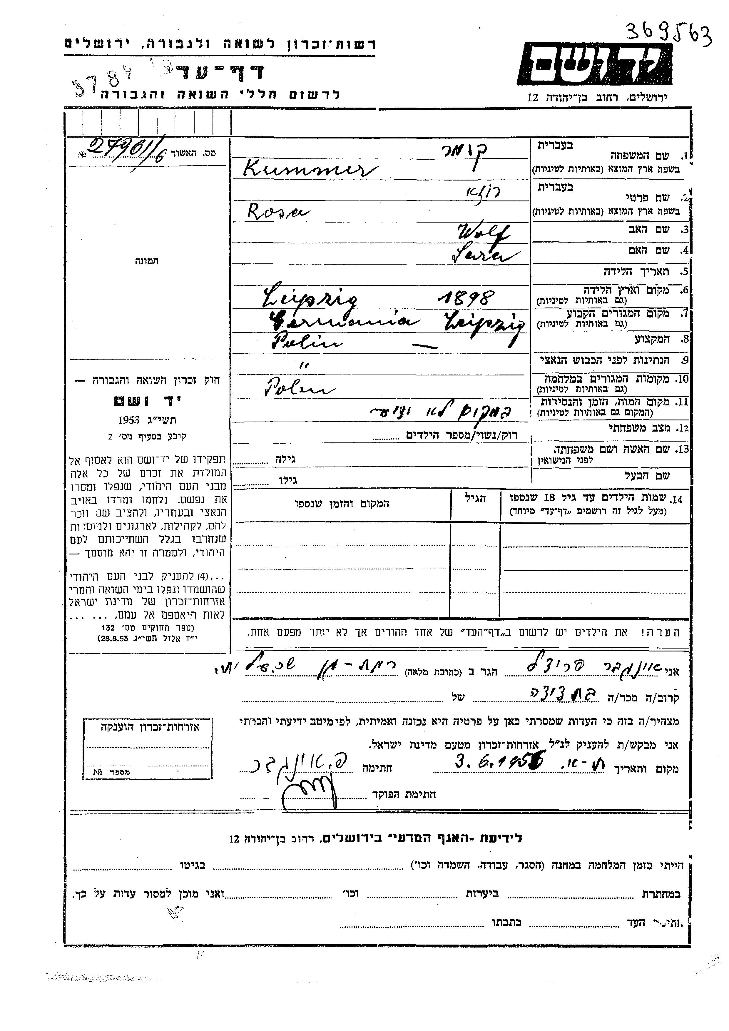 Rosa Kummer wurde im Jahr 1898 in Leipzig, Deutsches Reich geboren. Sie war die Tochter von Wolf und Sara. Vor dem Zweiten Weltkrieg lebte sie in Leipzig, Deutsches Reich. Während des Krieges war sie in Polen.