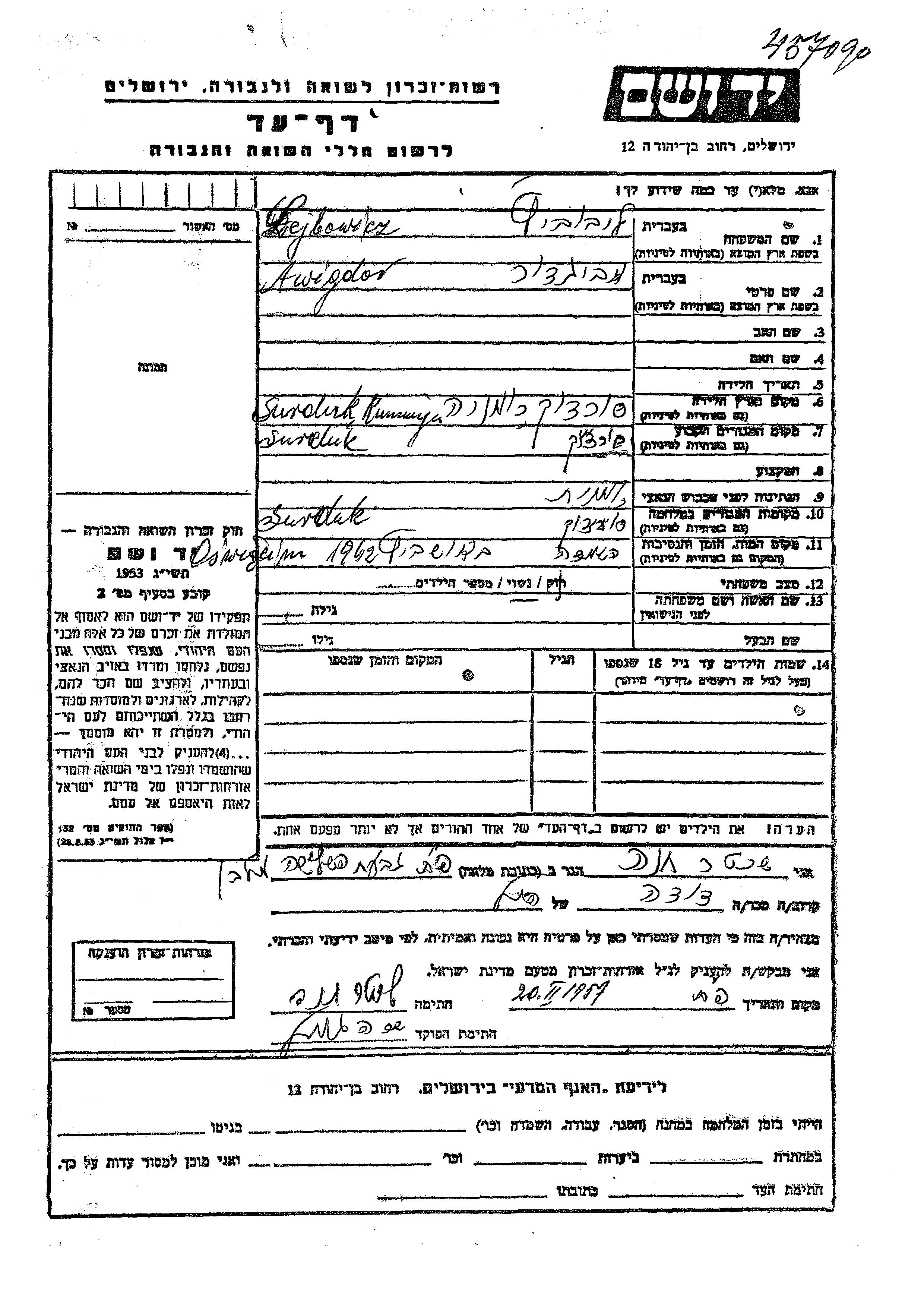 Awigdor wurde in der Schoah ermordet. Todesort: Auschwitz, Polen im Jahr 1942.