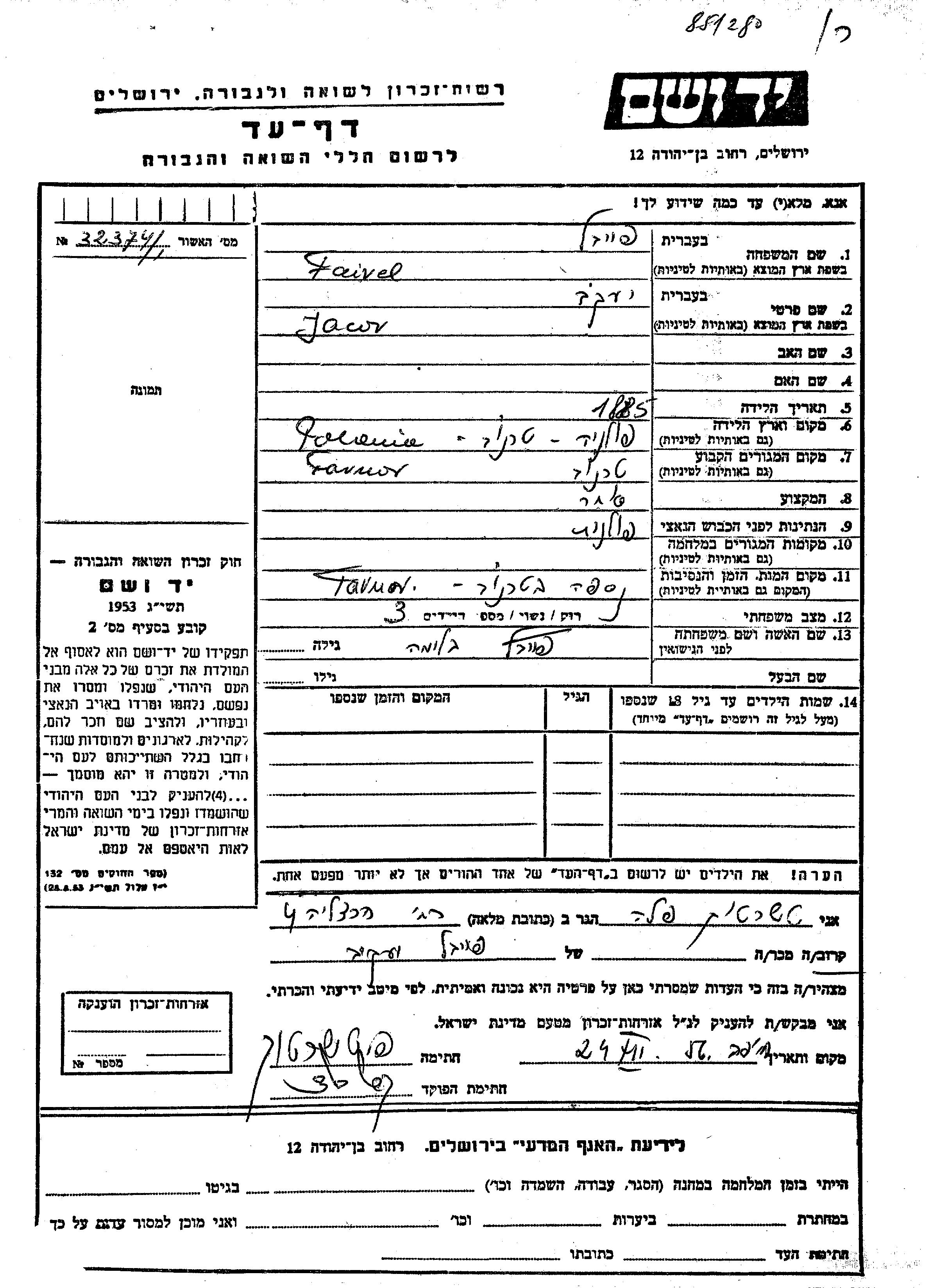 Jacov wurde in der Schoah ermordet. Todesort: Tarnow, Polen.