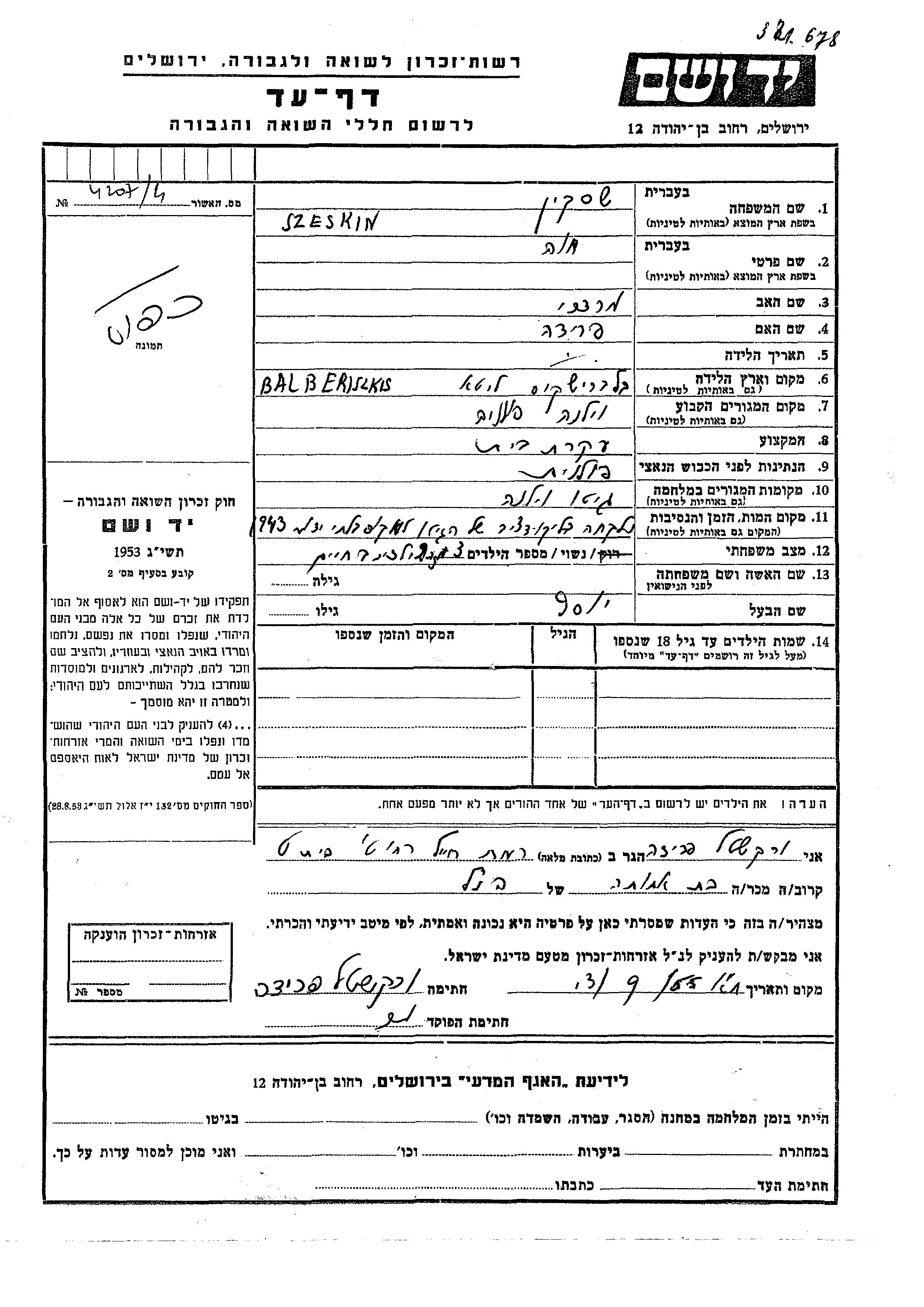 Khava Szeskin wurde in Balberishki, Litauen geboren. Sie war die Tochter von Mordekhai und Frida. Sie war Hausfrau und mit Yosef Verheiratet. Vor dem Zweiten Weltkrieg lebte sie in Wilno, Polen. Während des Krieges war sie in Wilno, Polen.