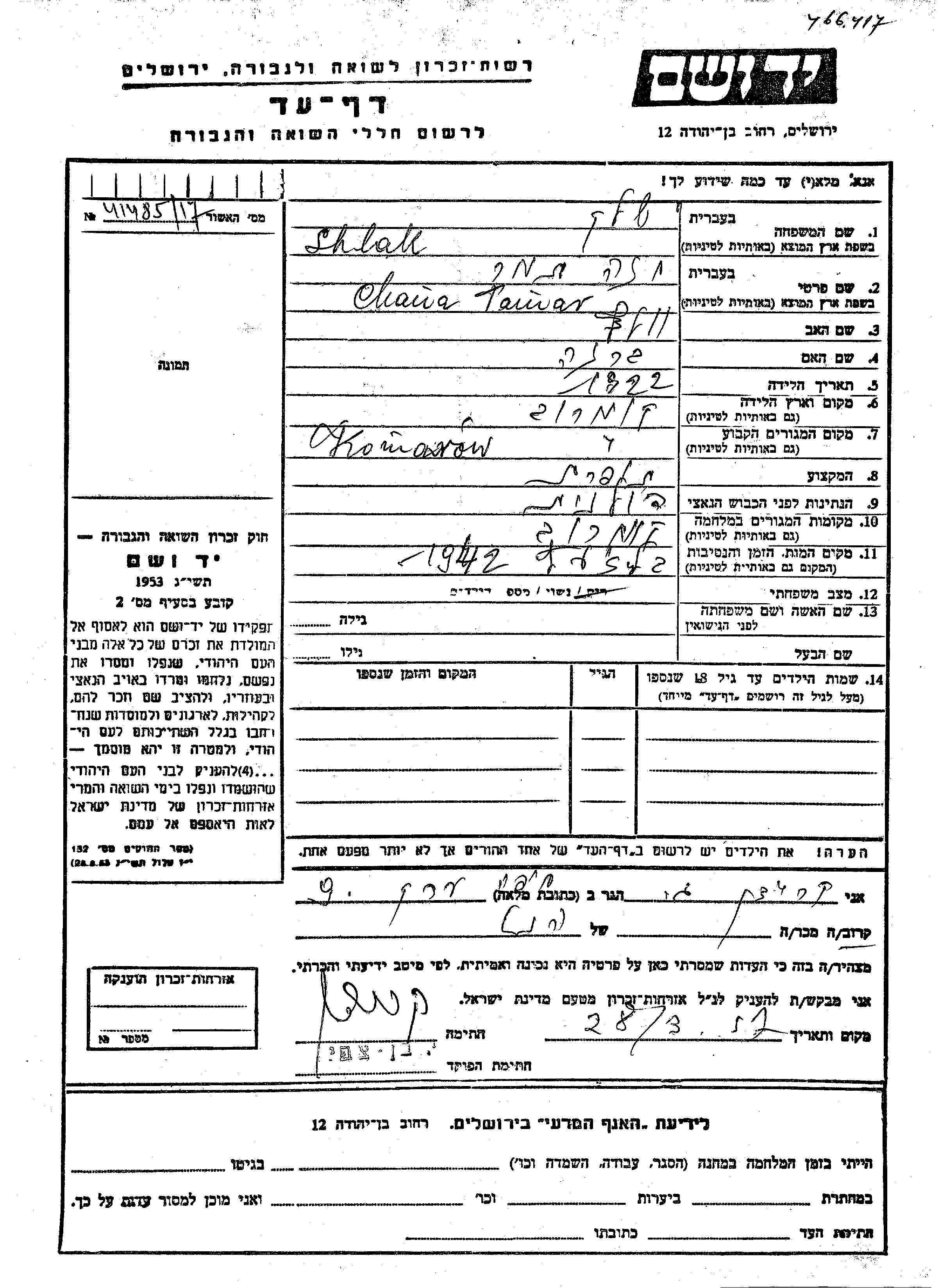 Suche nach einem Todesjahr im Zeitraum der Holocaust: 1933 bis 1945. Bitte wählen Sie 'Exakt' im Auswahlmenü, um nur nach einem einzelnen Jahr zu suchen, alternativ können Sie die flexibleren Optionen '+/- 2 Jahre' oder '+/- 5 Jahre' wählen.