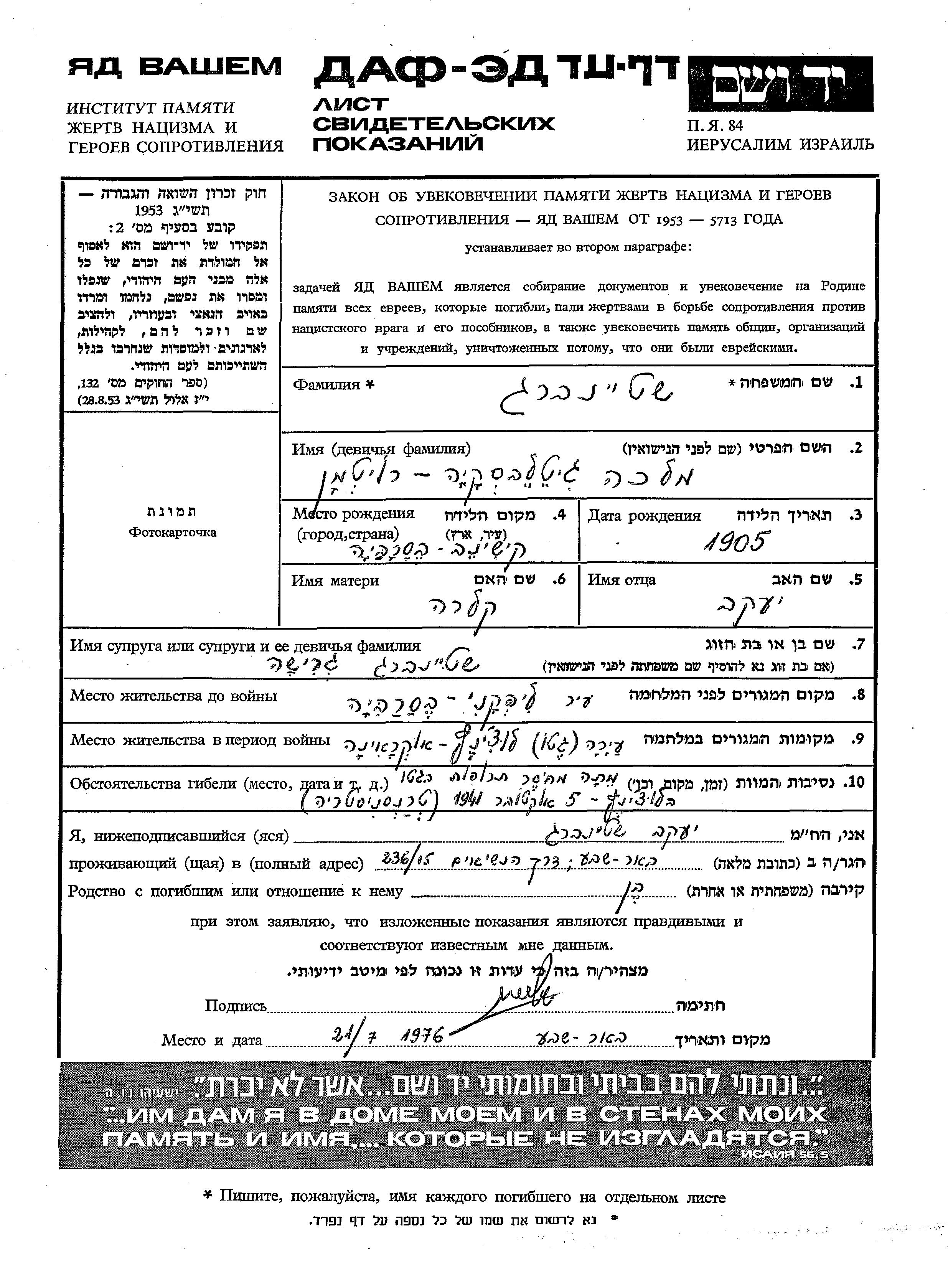Malka wurde in der Schoah ermordet. Todesort: Luchinets, Ukraine (UdSSR) im Jahr 05/10/1941.