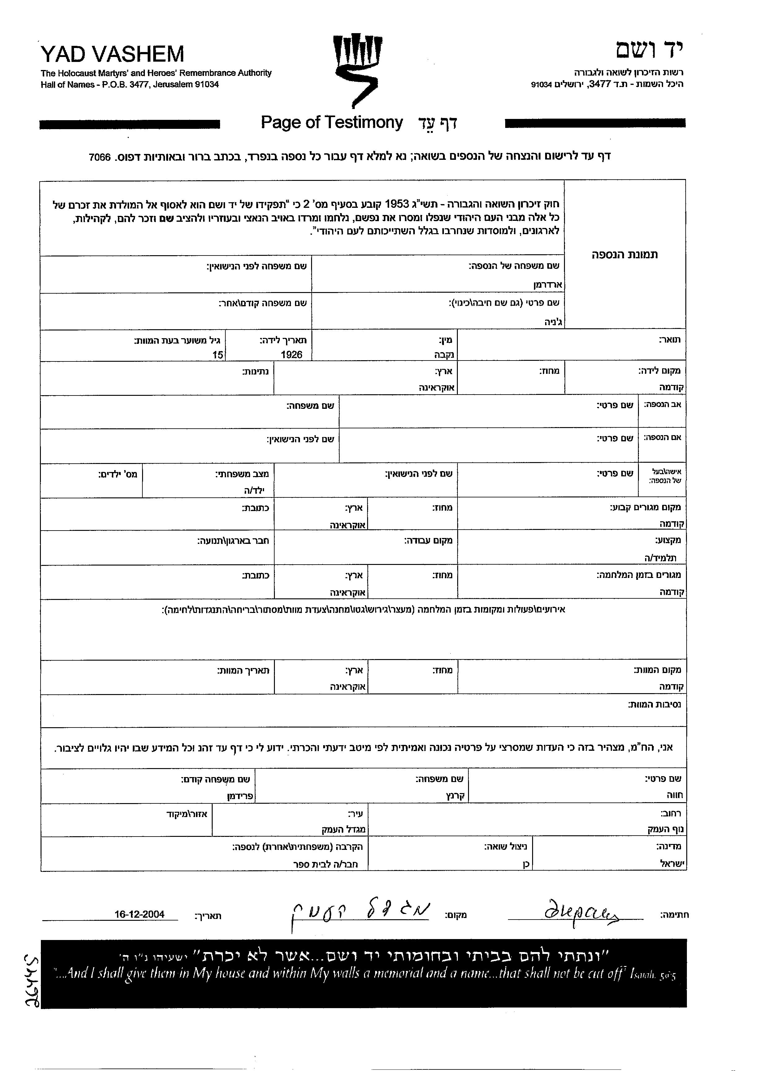 Arderman Genya 1926 Kodyma, Ukraine (UdSSR) Gedenkblatt (digital, unterzeichnet)