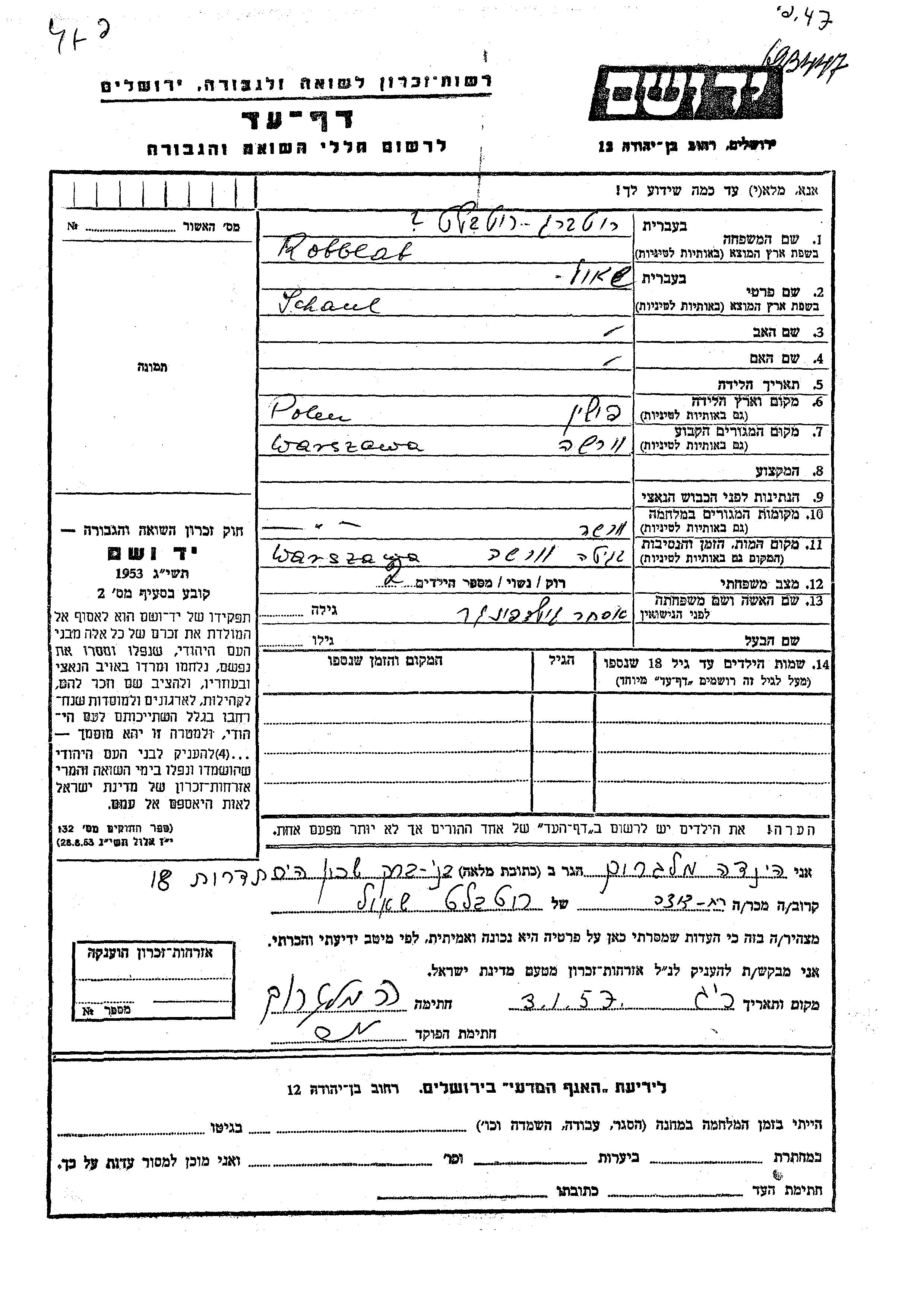 Schaul wurde in der Schoah ermordet. Todesort: Warsaw, Polen.