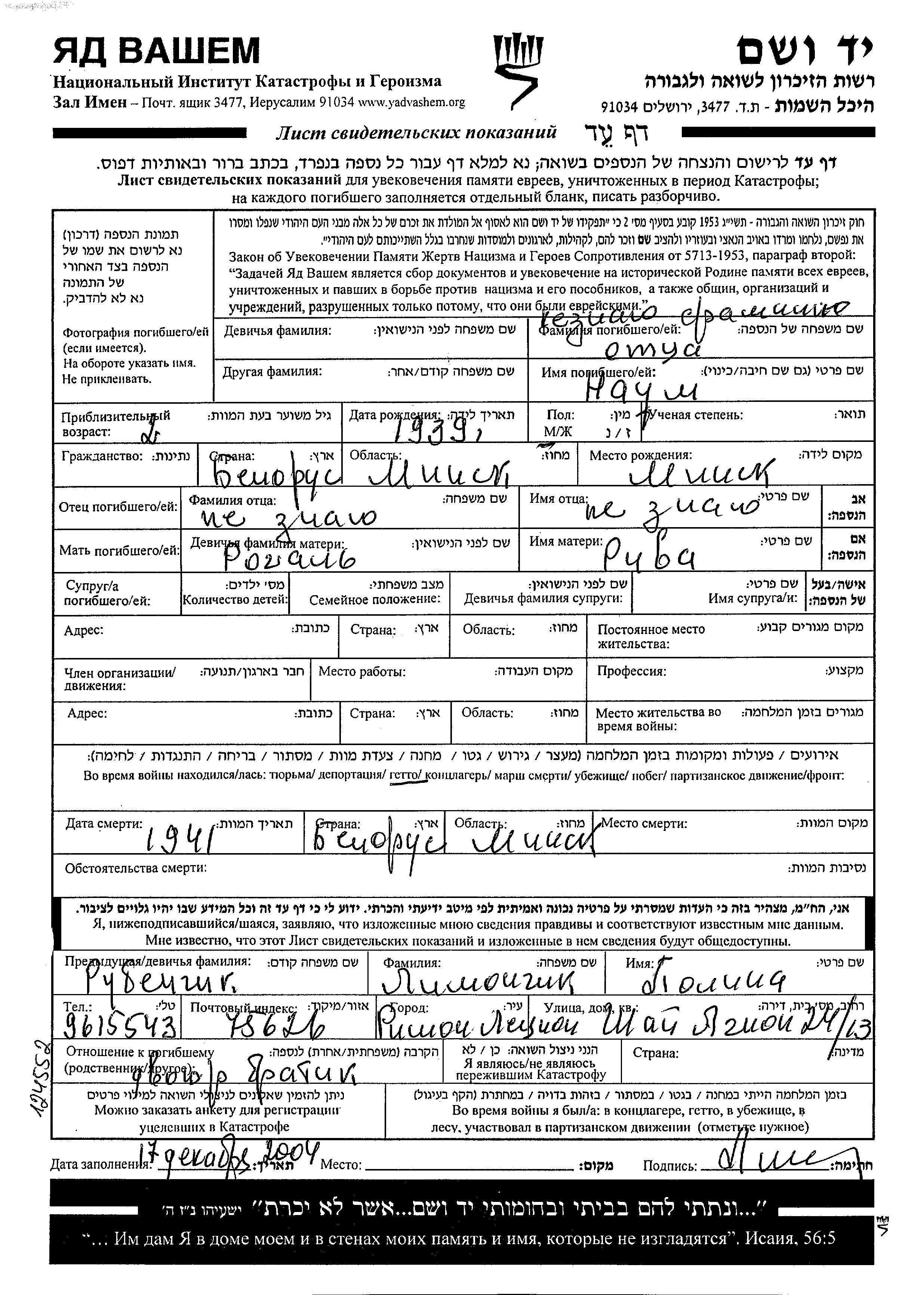 Nauma wurde in der Schoah ermordet. Todesort: Minsk, Weißrussland (UdSSR) im Jahr 1941.
