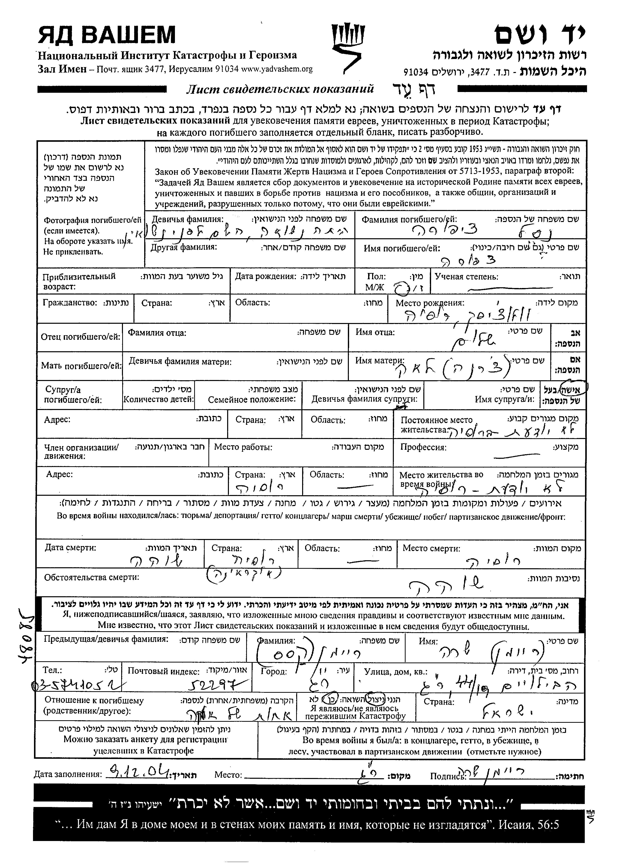 Name unbekannt Tzipora Ukraine (UdSSR) Gedenkblatt